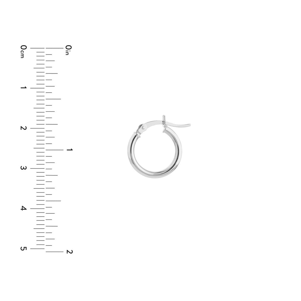 14K White Gold Round Tube Huggie Hoop Earrings in 14K White Gold