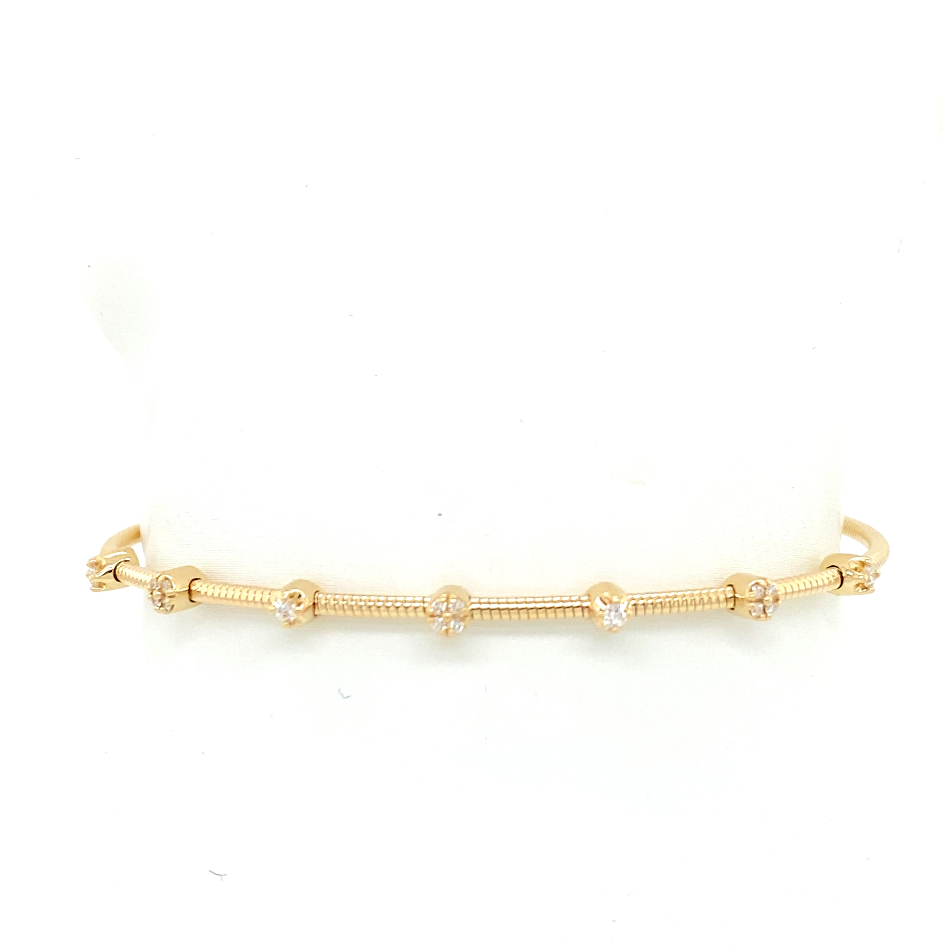 14K Yellow Gold and Titanium 0.17ctw Diamond J/SI 7 Stone Station Wire Flex Bangle Bracelet in Gold