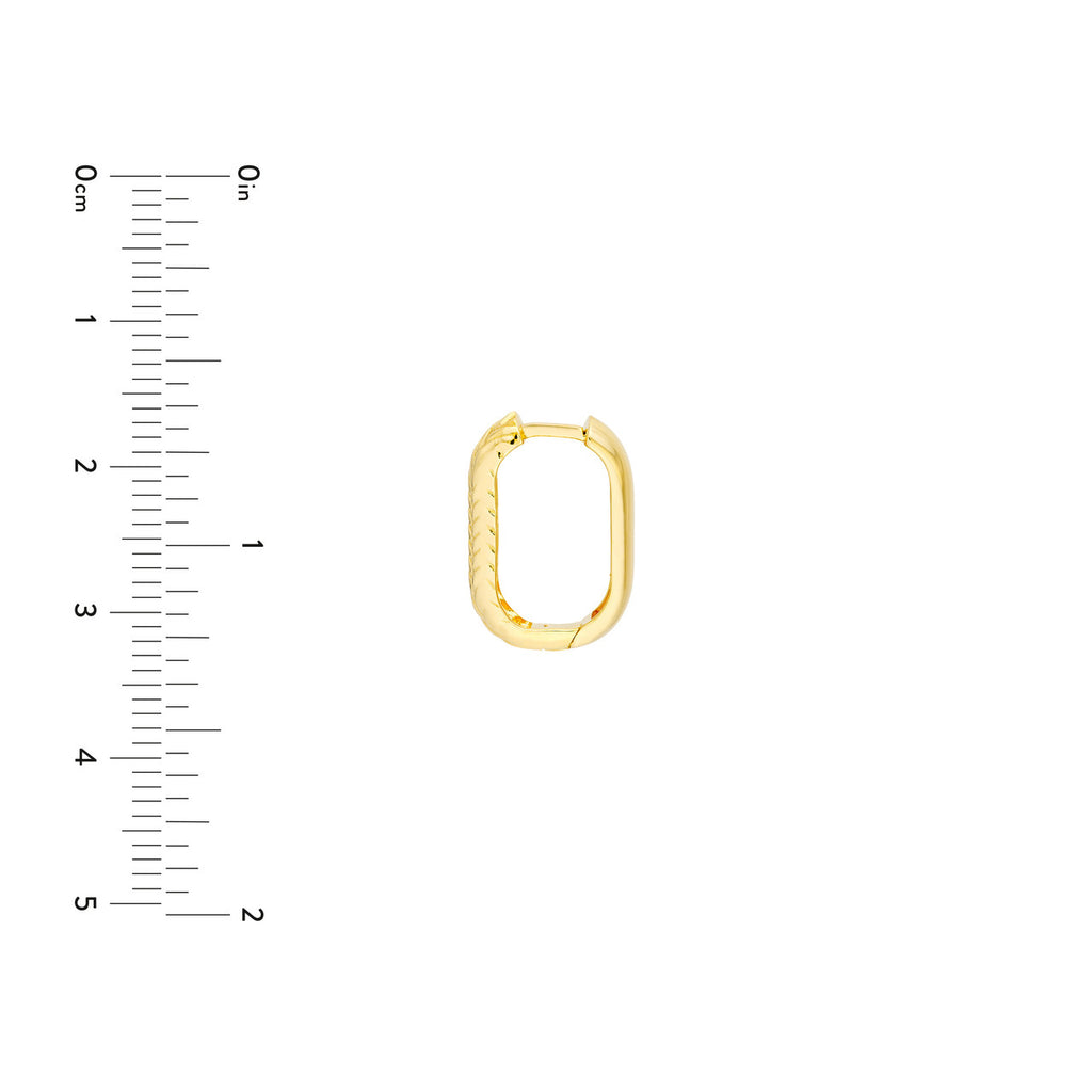 14K Yellow Gold Diamond Cut Rectangular Hoop Earrings