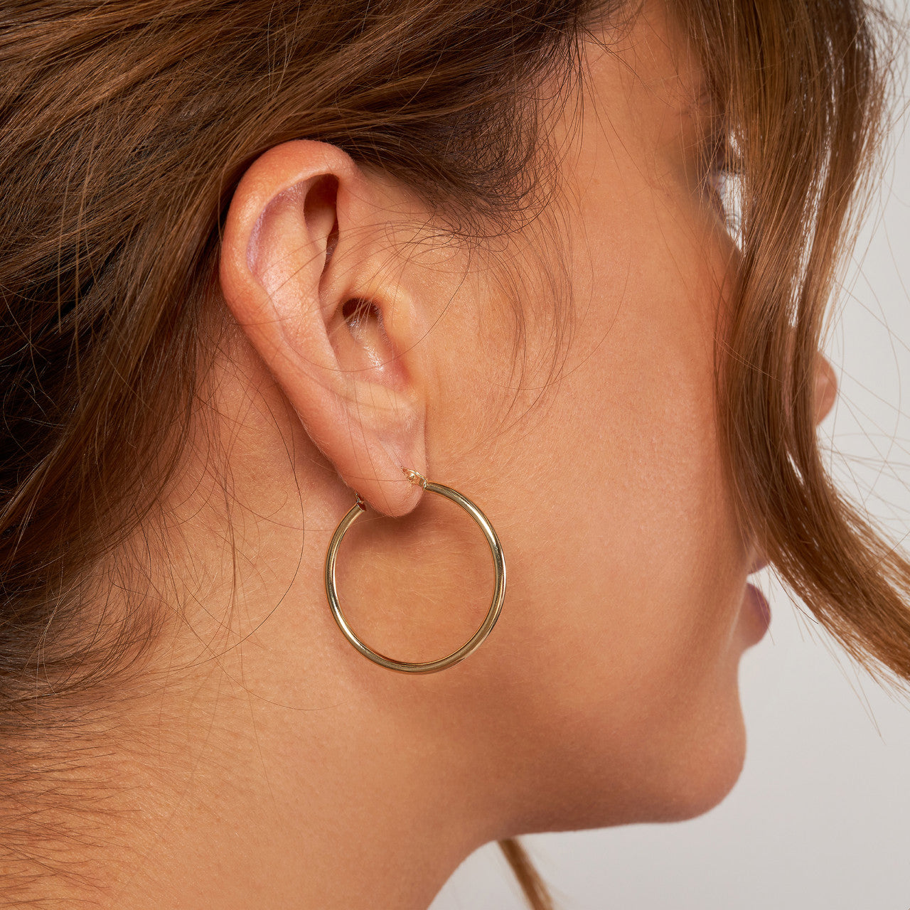 14K Yellow Gold Medium Round Tube Hoop Earrings in Yellow Gold