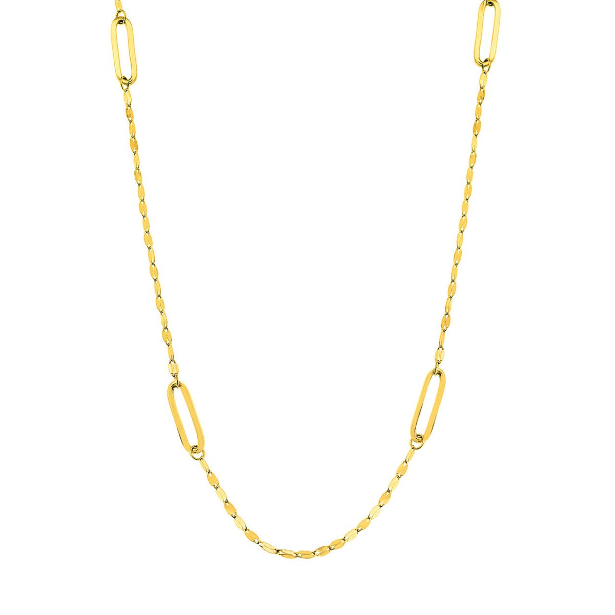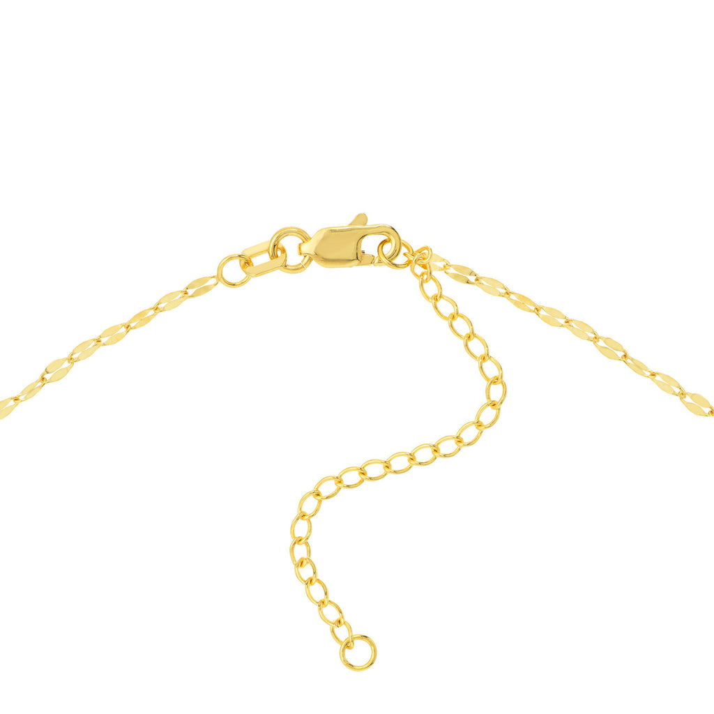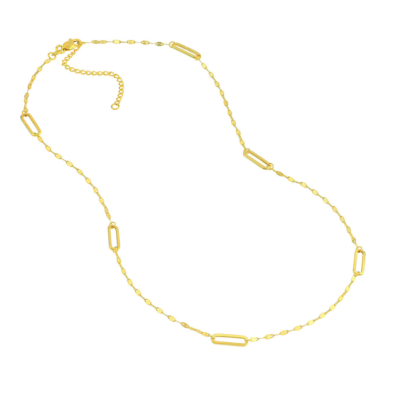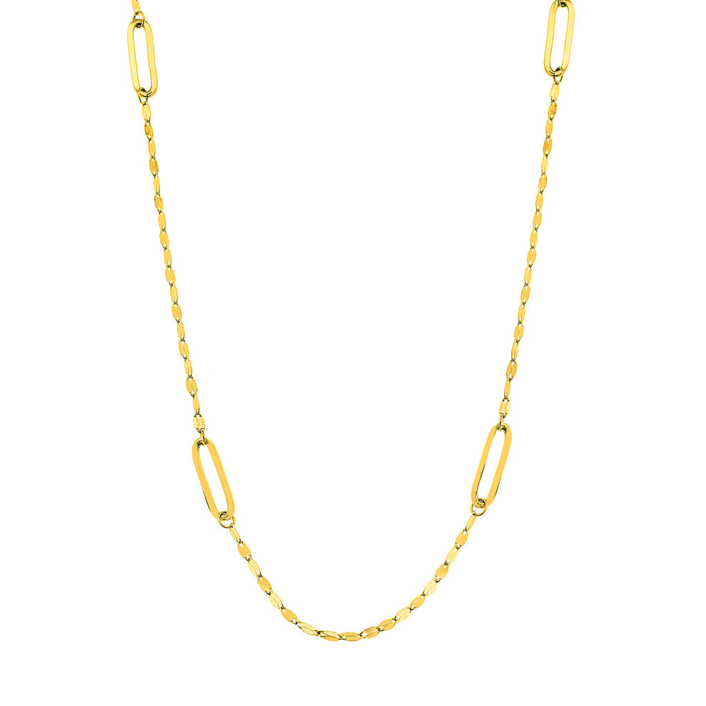 14K Yellow Gold Pearl and Hammered Forzatina Link Station Necklace 18"