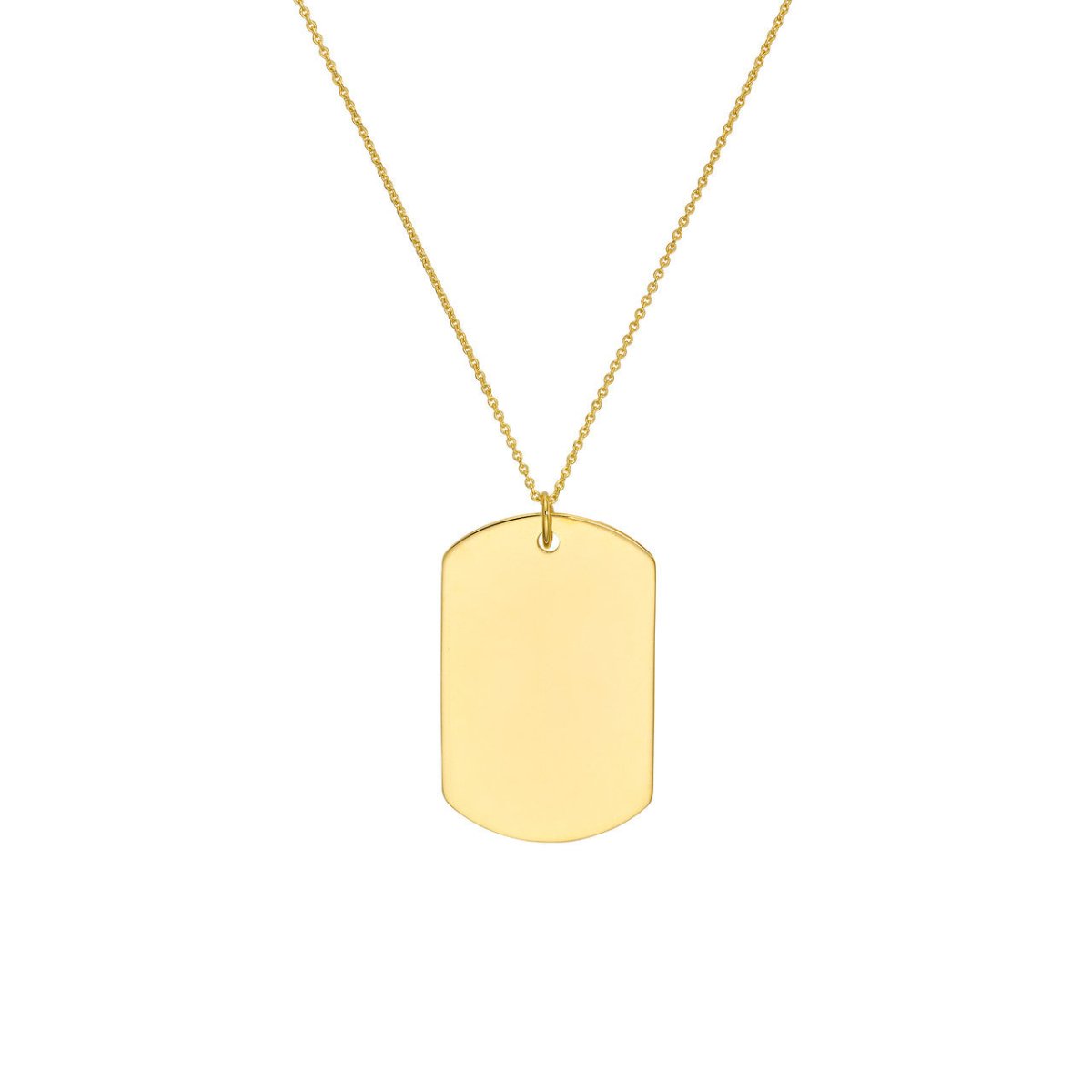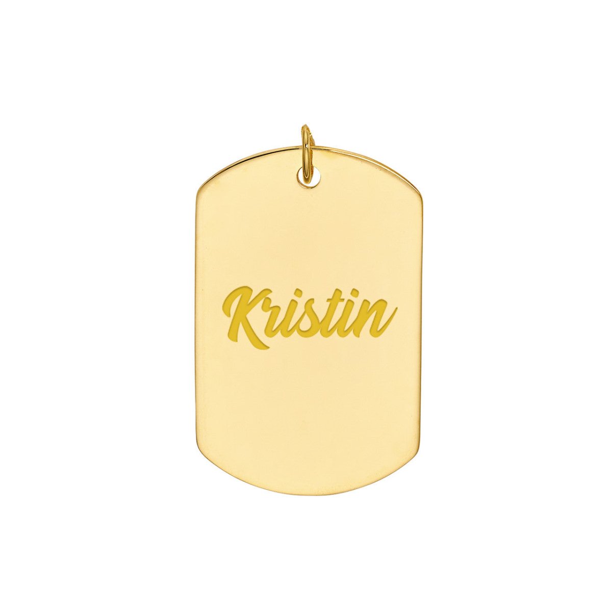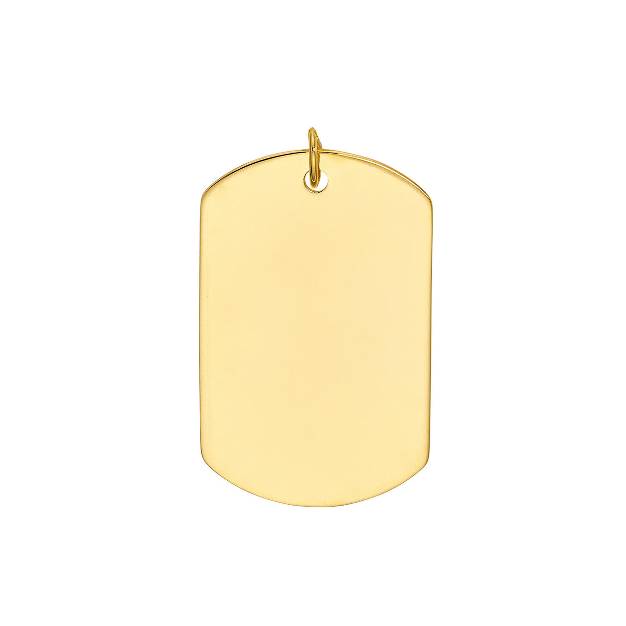 14K Yellow Gold Plain Engraved Large Dog Tag Pendant in Yellow Gold