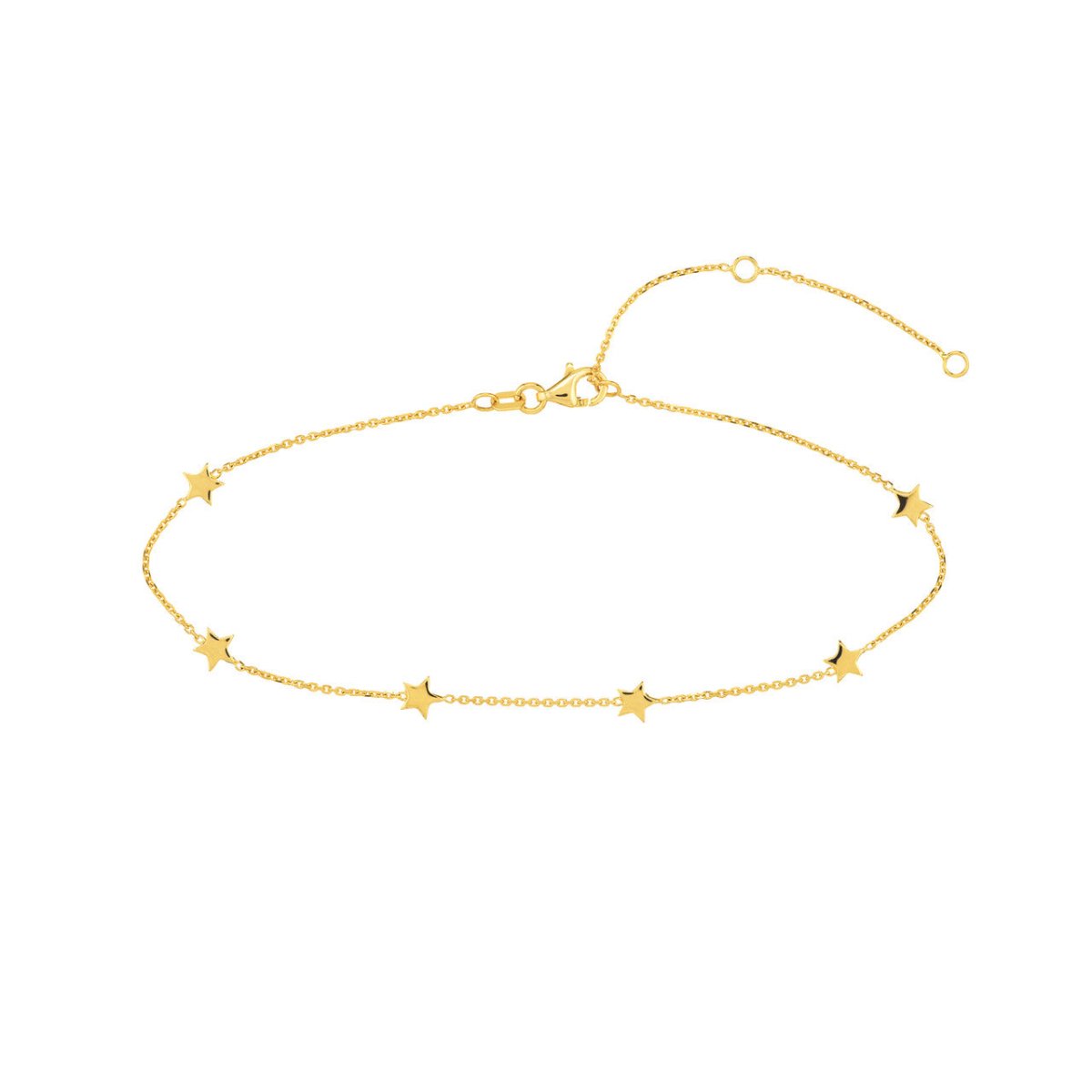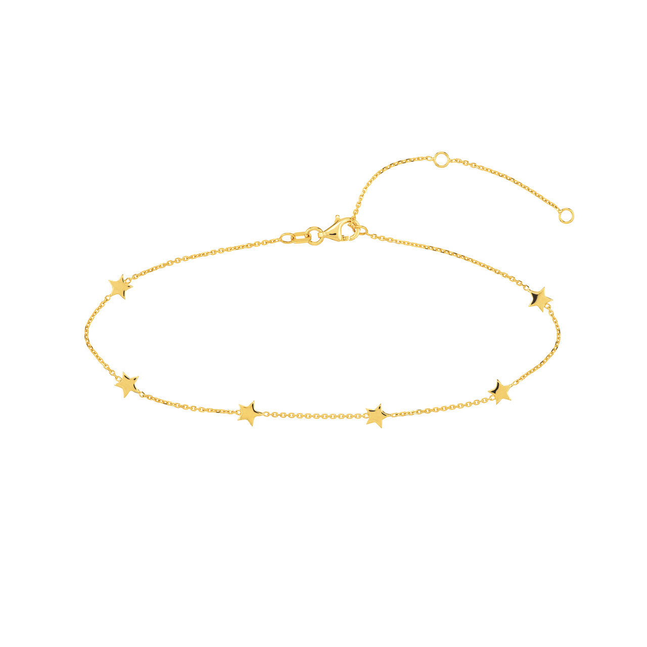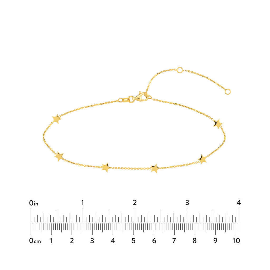14KY 6PC MINI STAR STATION ANKLET 10" ADJ