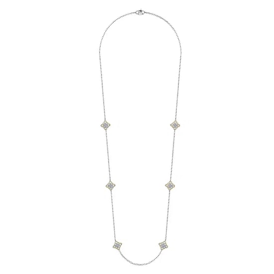 18K White and Yellow Gold 6 Station Diamond Necklace 32" (3.47ctw)