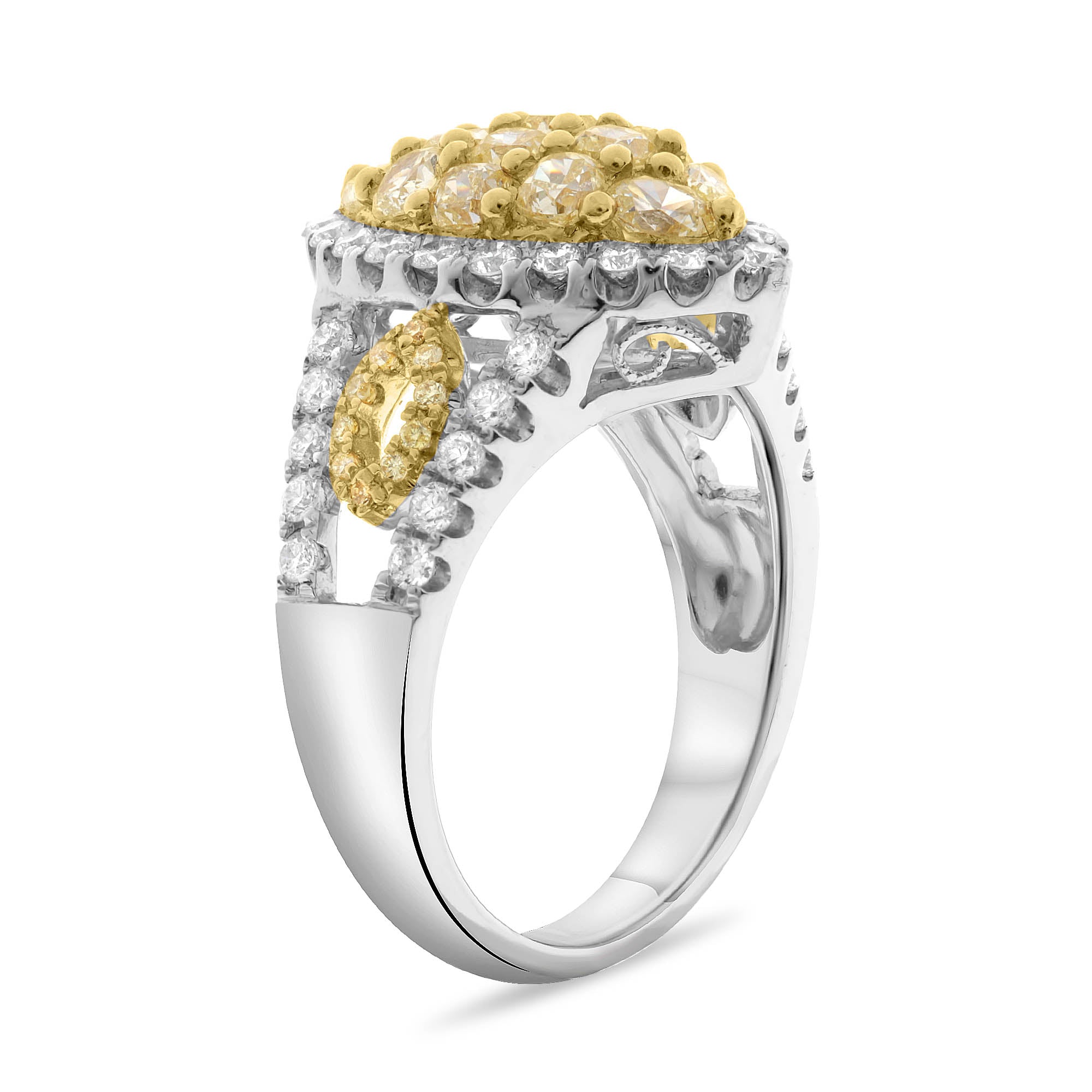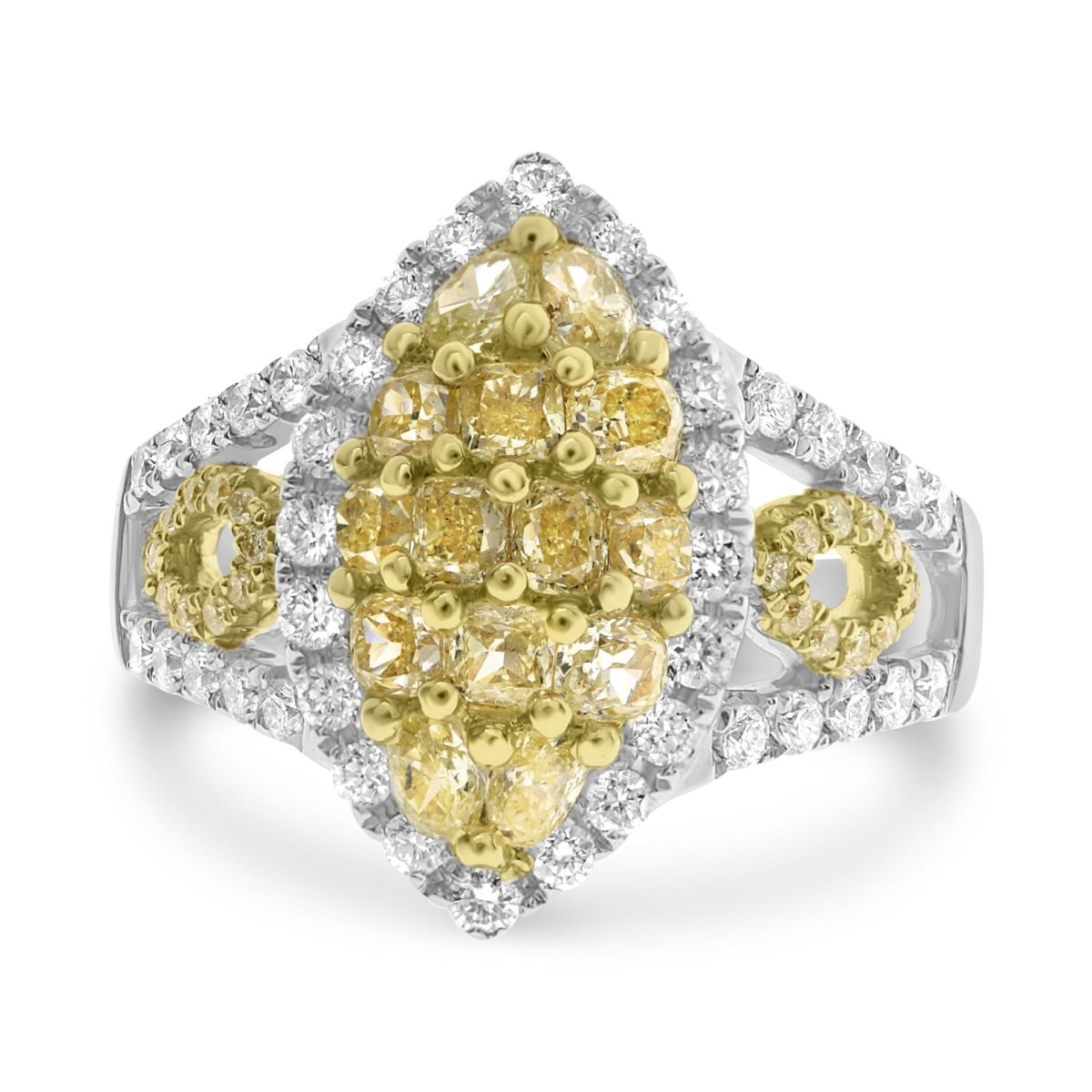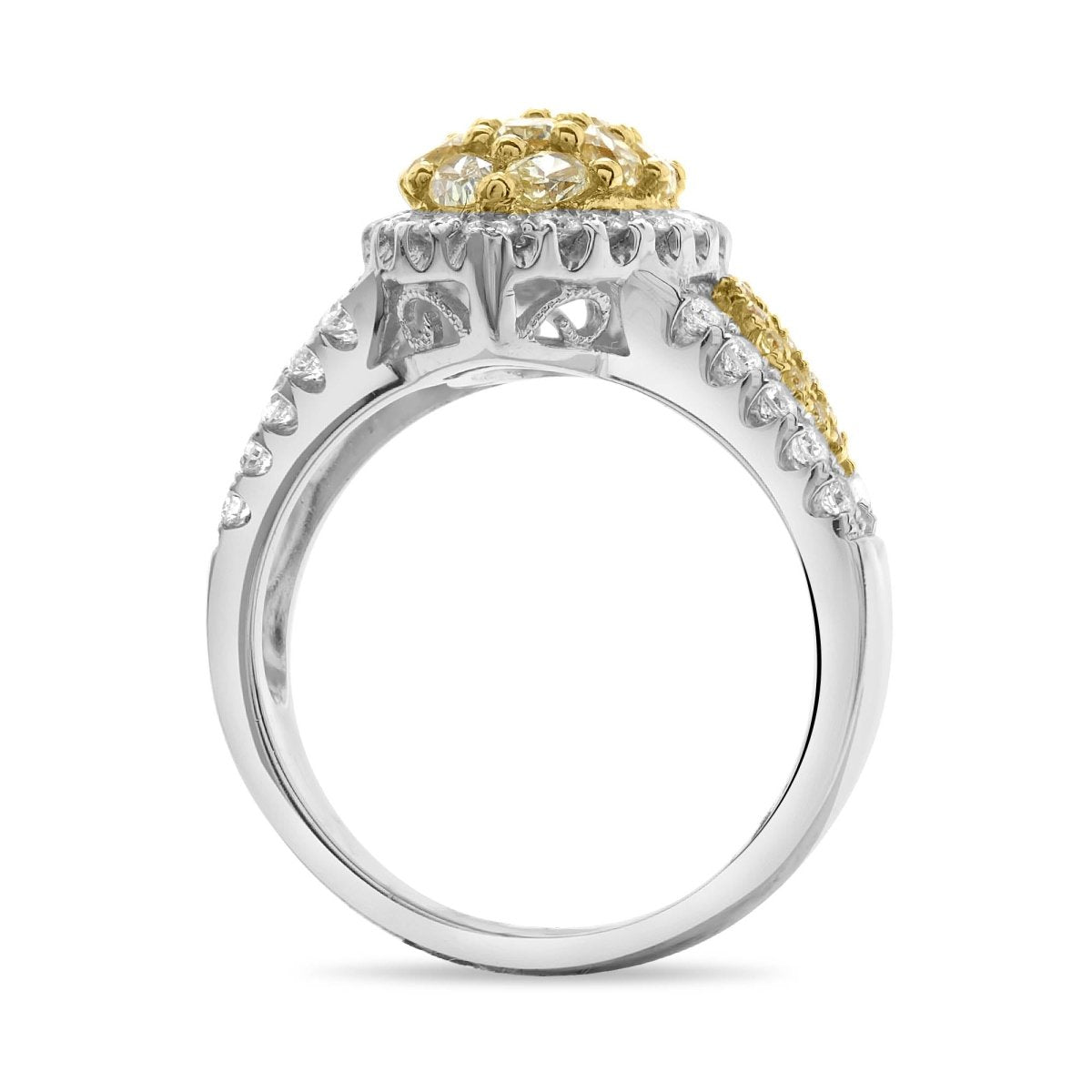 18K White Gold 1.32ctw Yellow Diamond and 0.64ctw Diamond Marquise Halo Ring