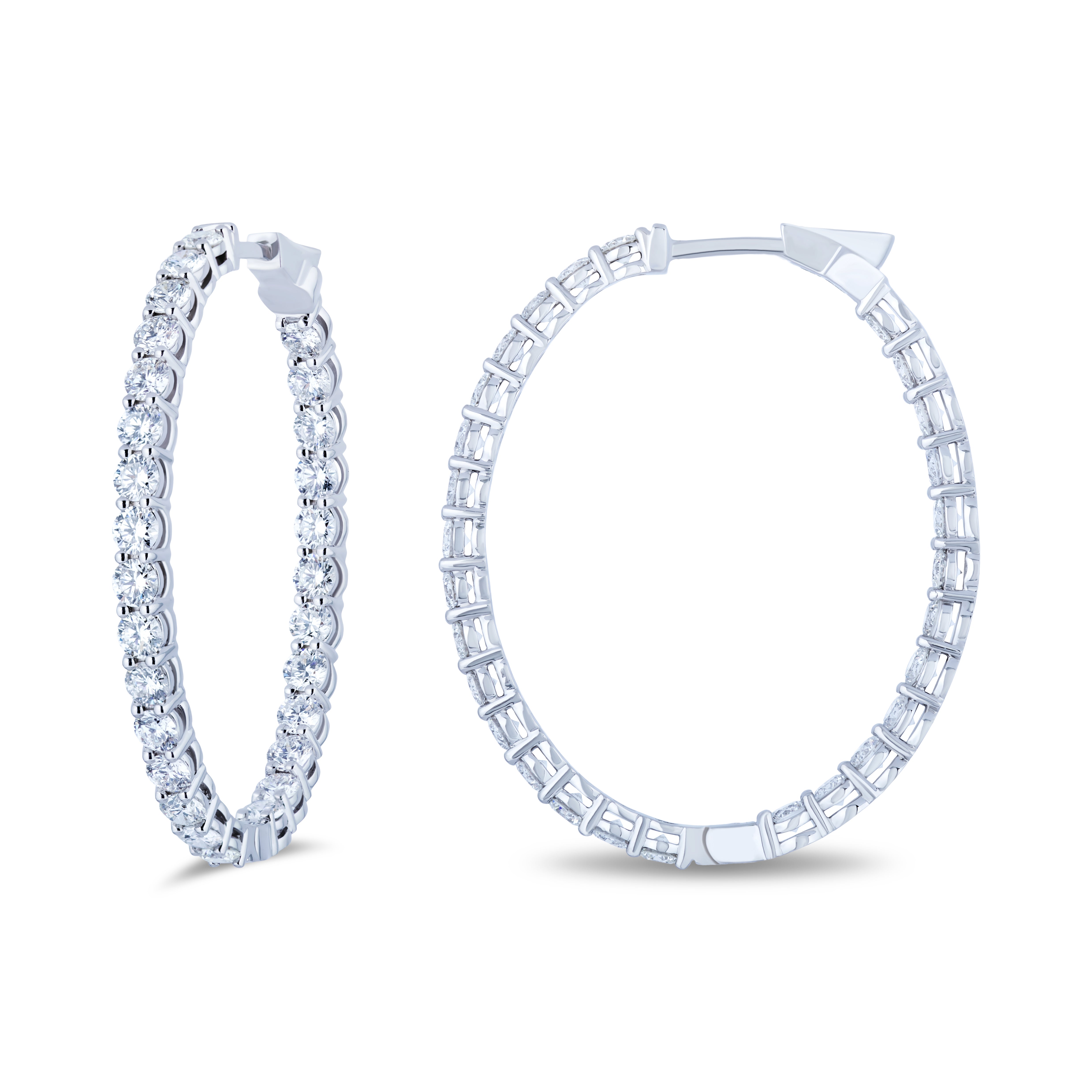 18K White Gold 4.20ctw Inside Out Oval Medium Hoop Earrings