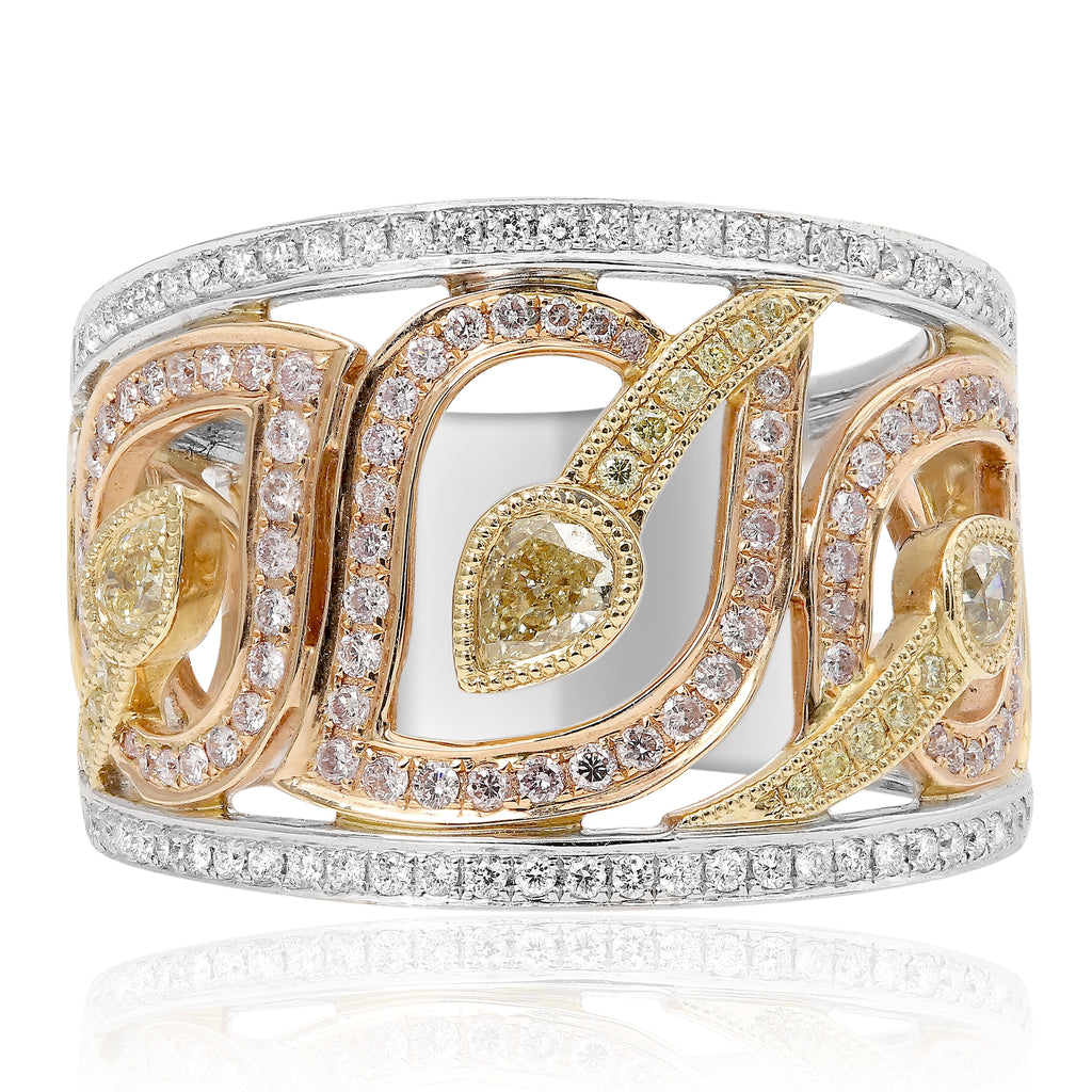 18K White Gold Pink and White Diamond Swirl Pear Band (1.01ctw)