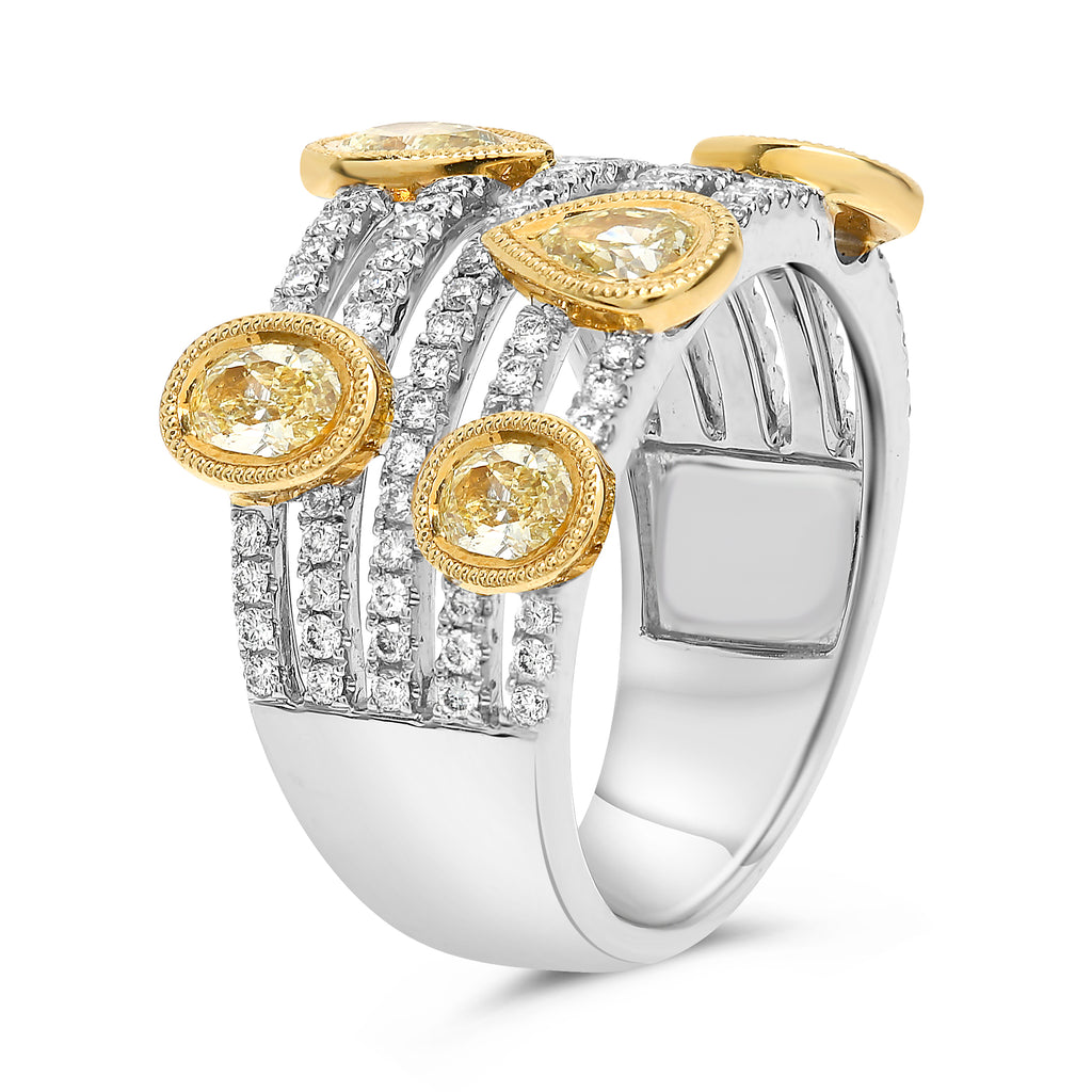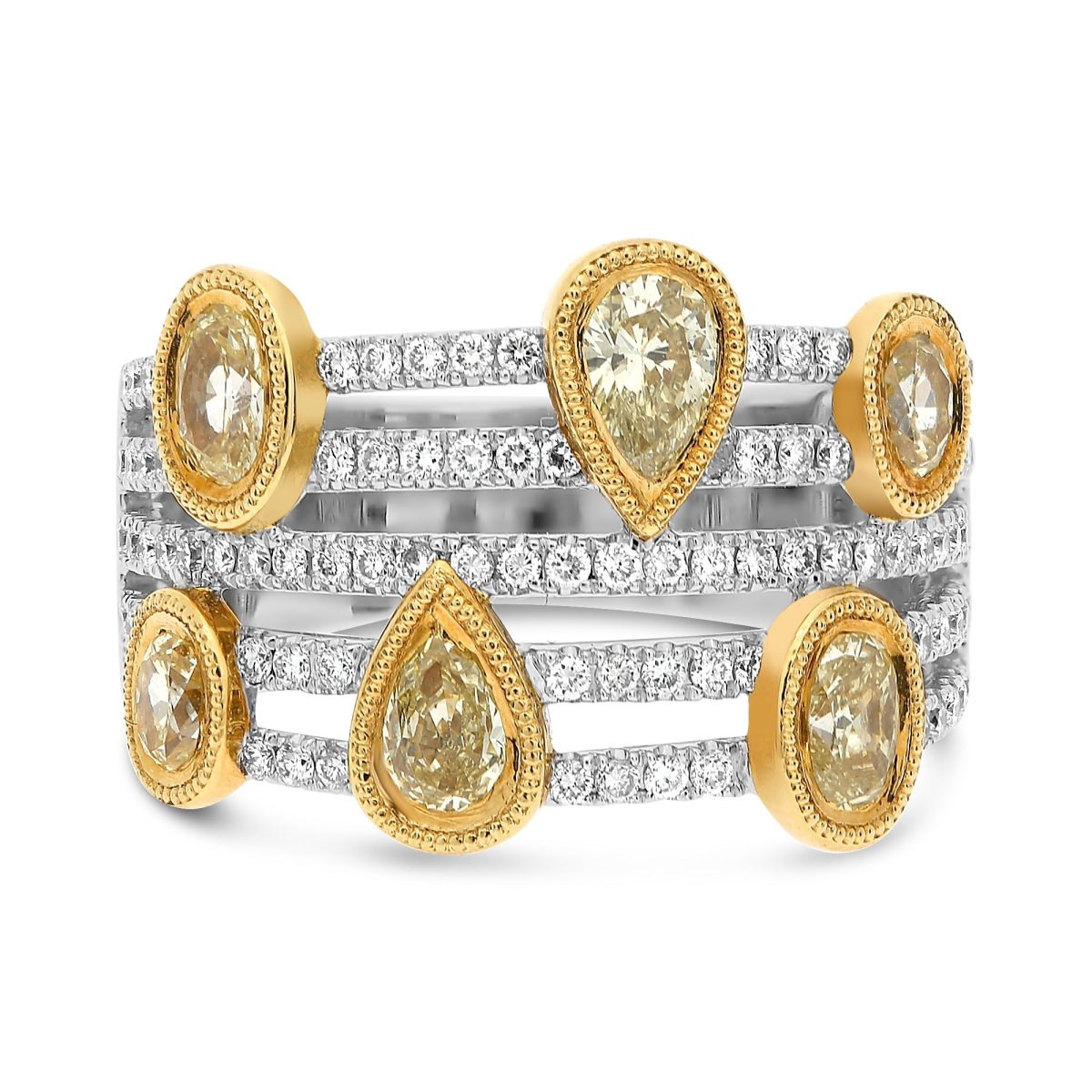 18K White Gold Yellow Diamond and Diamond Multi-Shaped Ring (1.86ct)