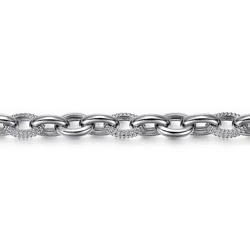 Alternating Beaded Open Link Chain Bracelet in Sterling Silver