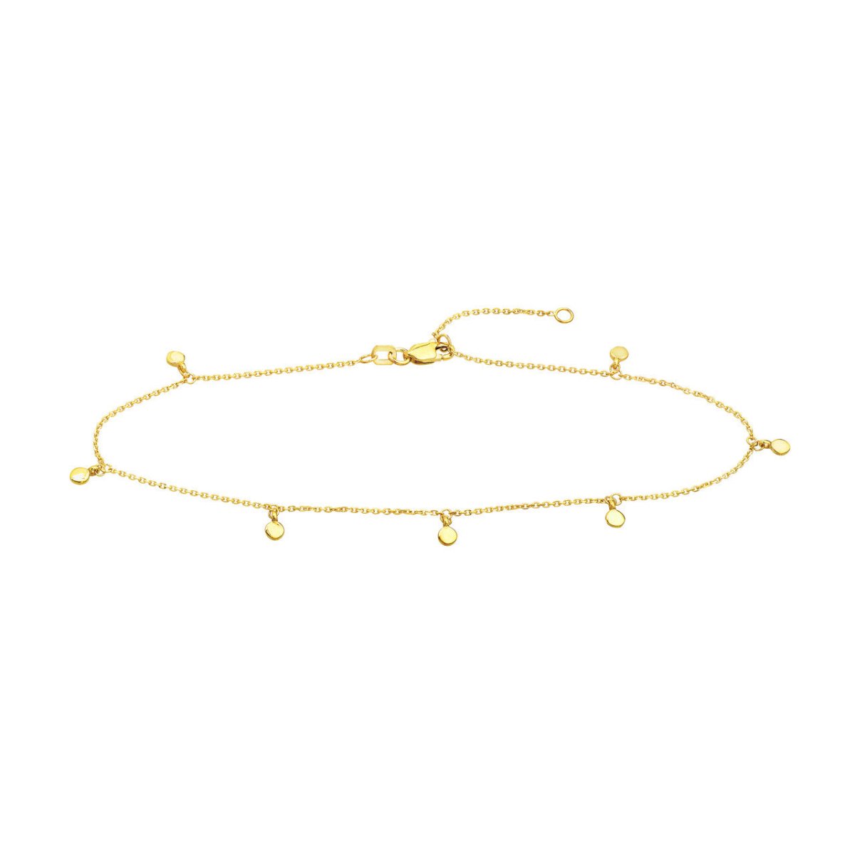 Brand Disk Dangle Stations Anklet in 14K Yellow Gold (10")