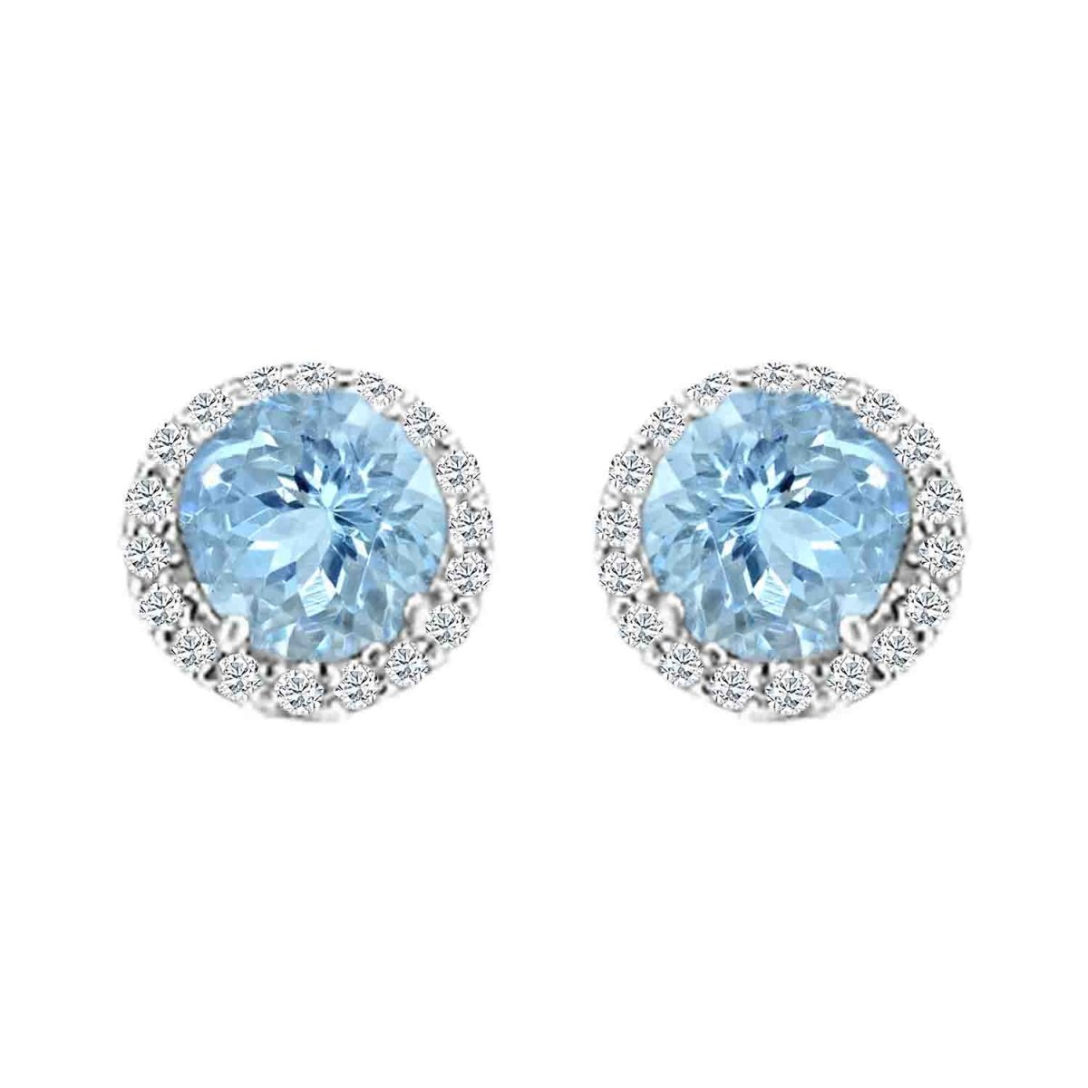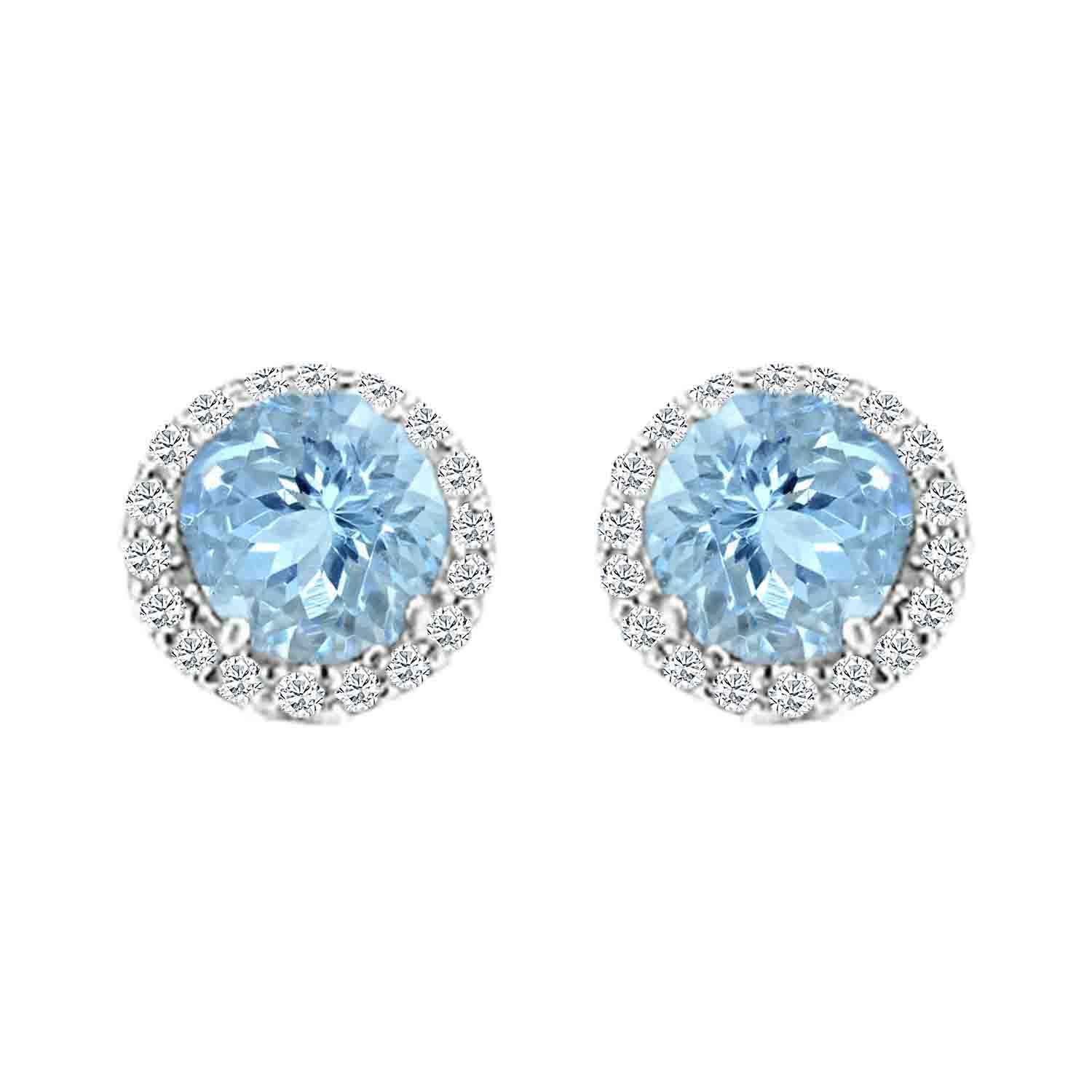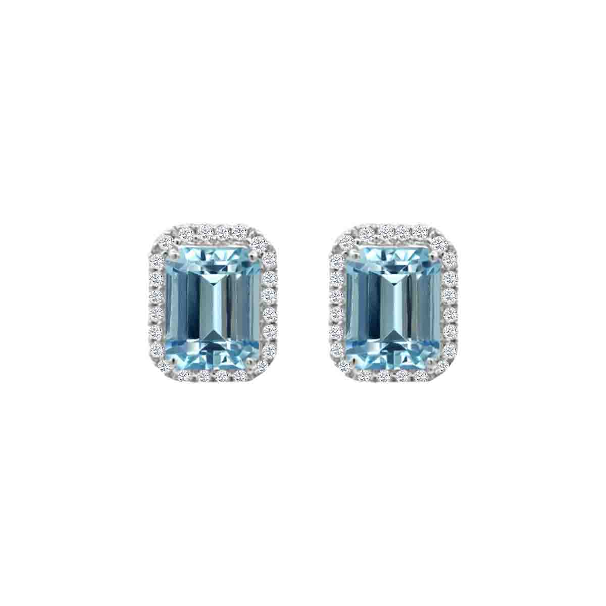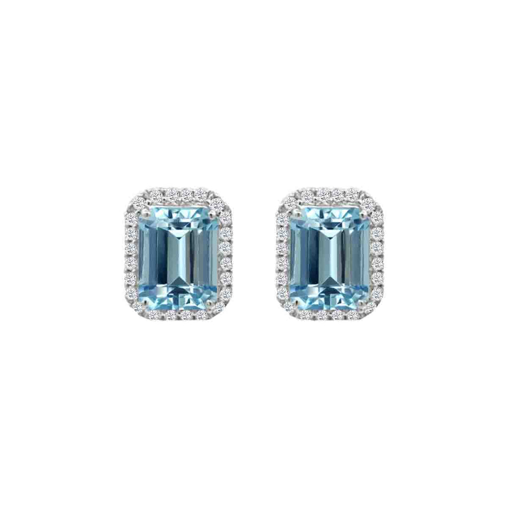 Brand Name Octagon Aquamarine and Diamond Halo Stud Earrings in 14K White Gold (3.2ctw)