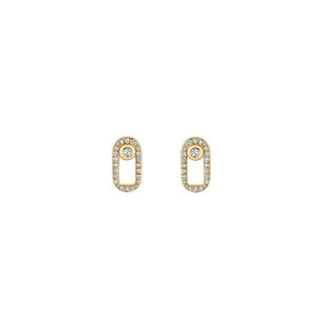 Diamond Bezel Offset Pave Link Stud Earrings in 14K Yellow Gold (0.38ct)