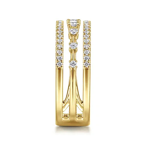 Gabriel & Co 3Row Station Diamond Fashion Ring in 14K Yellow Gold (.47ctw)