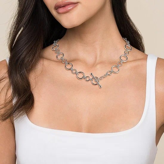 Gabriel & Co Alternating Beaded Round Link Chain Necklace with Toggle 18" in Sterling Silver