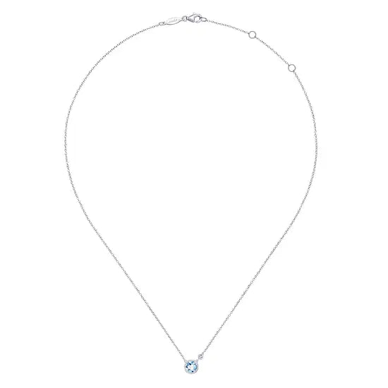 Gabriel & Co Aqua and Diamond Accent Bezel Pendant Necklace in Sterling Silver (0.7ctw)