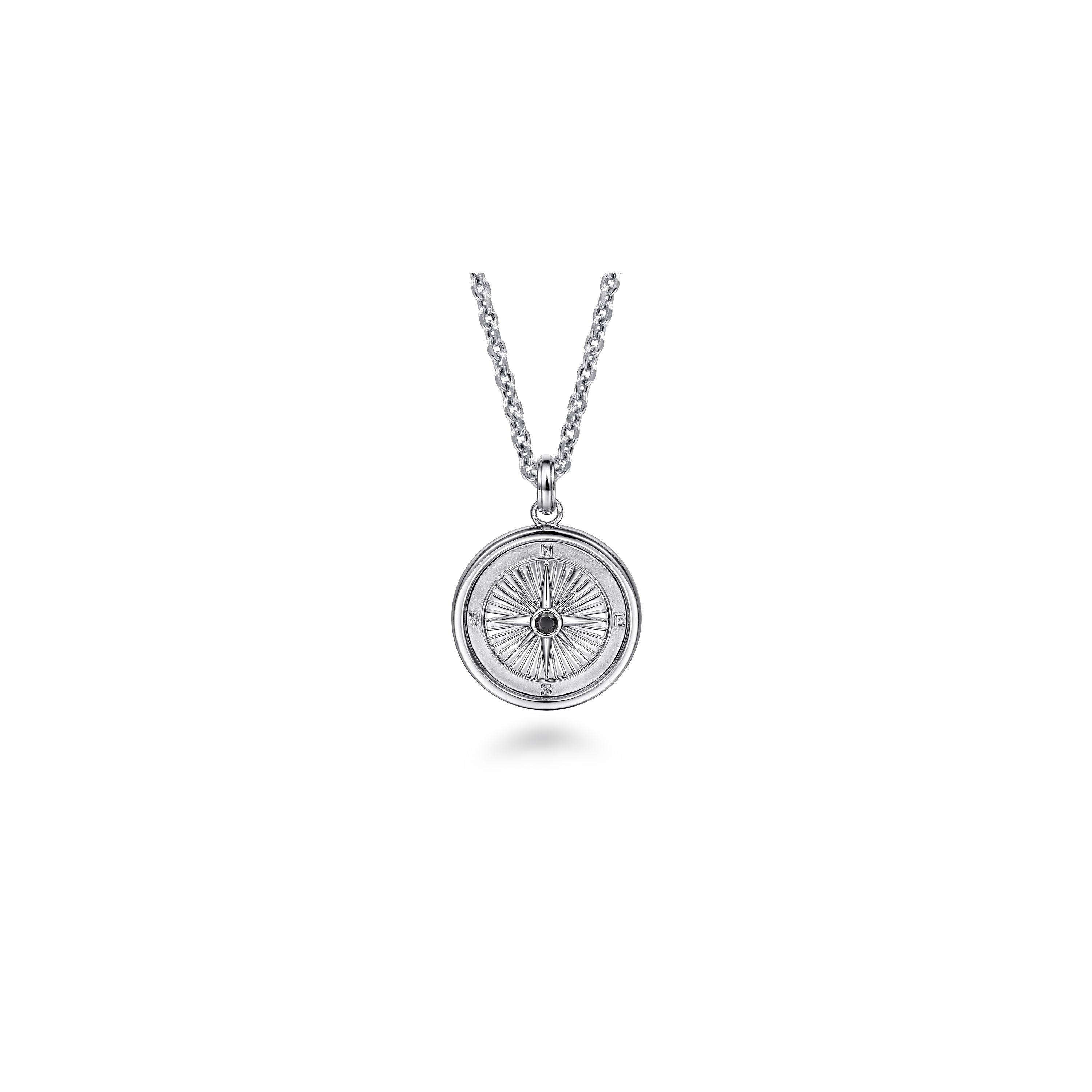 Gabriel & Co Black Spinel Compass Pendant in Sterling Silver