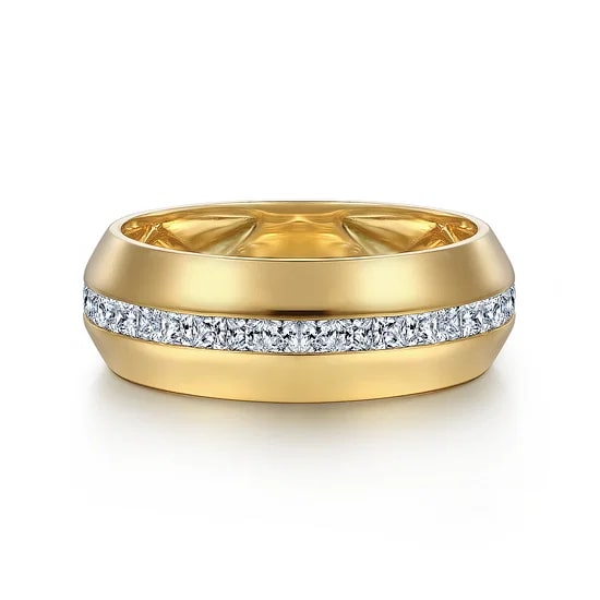 Gabriel & Co Channel Satin Men's Band with 0.88ctw Diamonds in 14K Yellow Gold