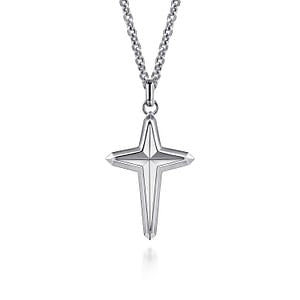 Gabriel & Co Contemporary Cross Pendant Necklace on Chain 22" in Sterling Silver