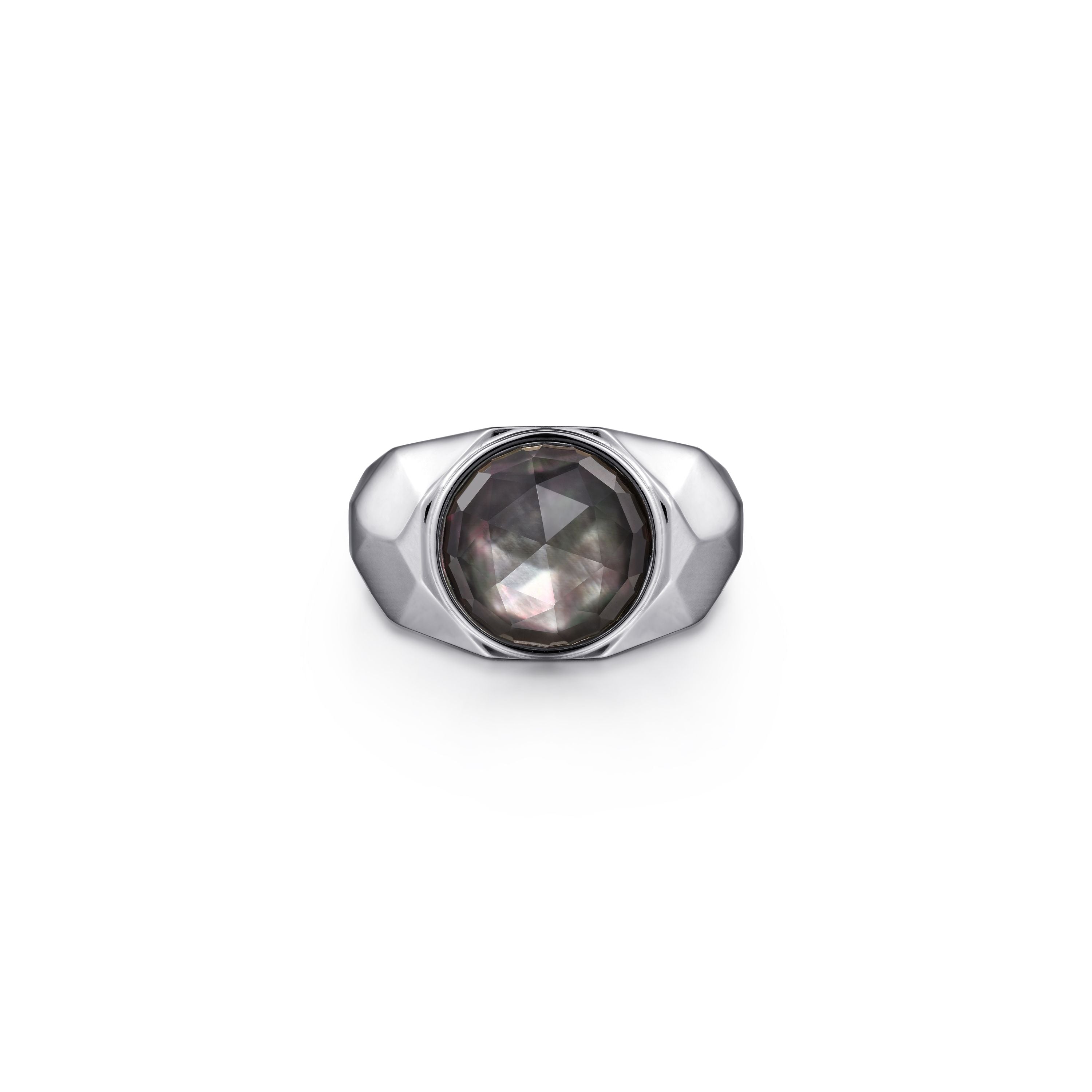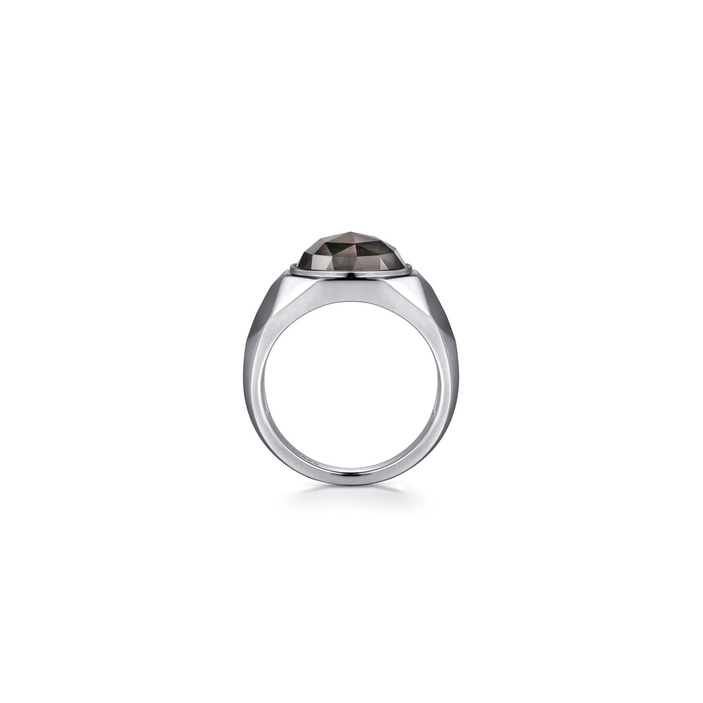 Gabriel & Co Faceted Black Mother of Pearl Signet Ring in Sterling Silver (5.05ct)