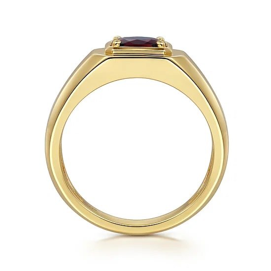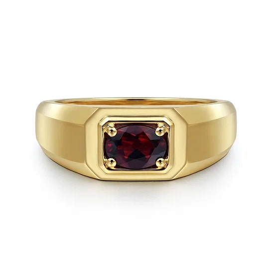 Gabriel & Co Garnet Bevel Edge Satin Men's Ring in 14K Yellow Gold (1.07ct)