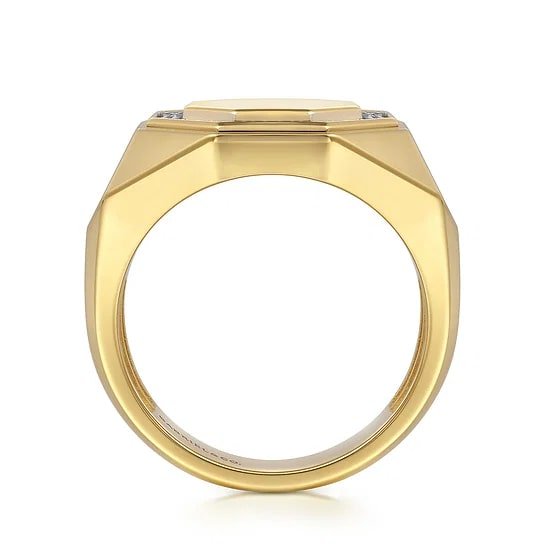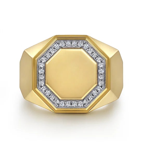 Gabriel & Co Hexagon Diamond Halo Satin Men's Ring in 14K Yellow Gold (0.20ctw)