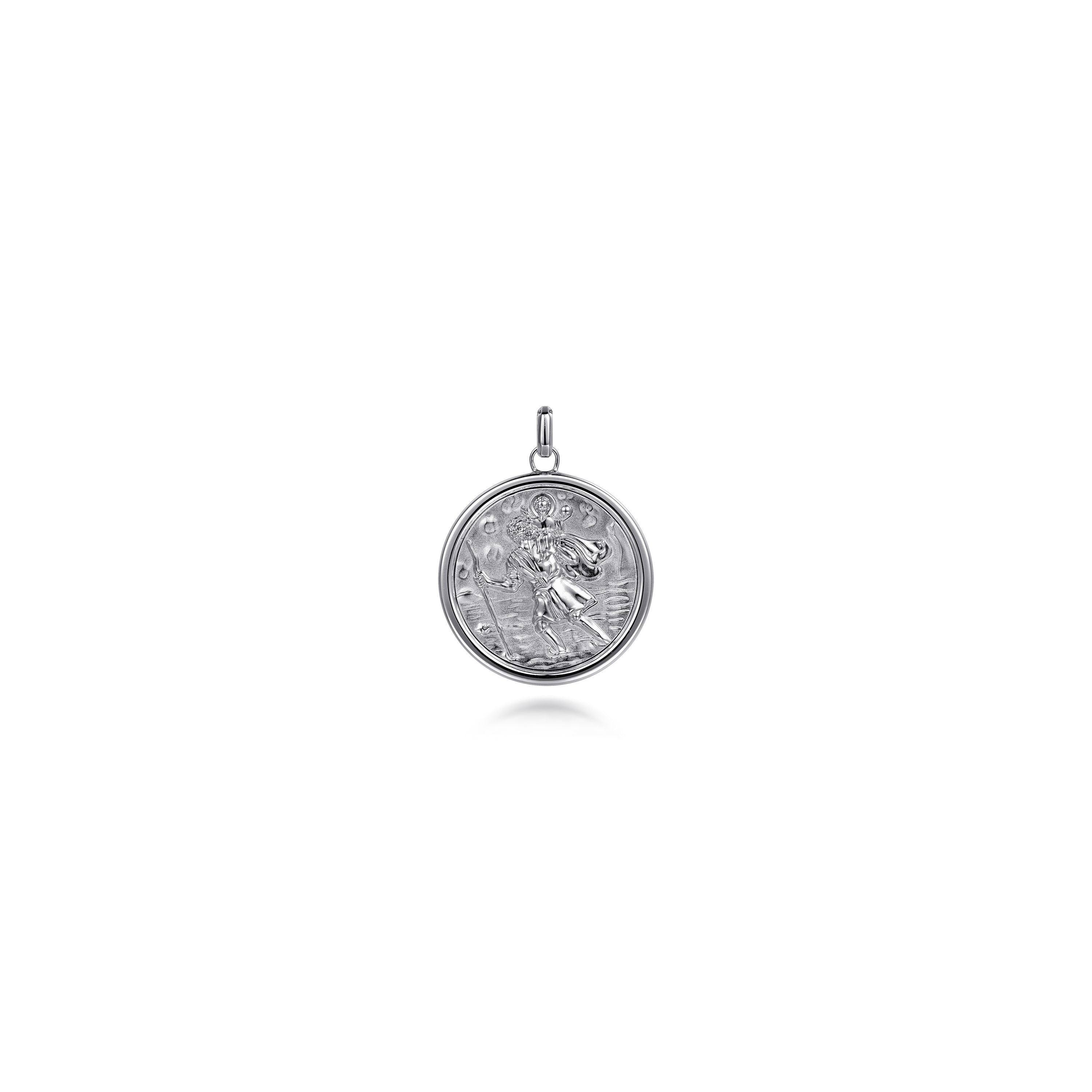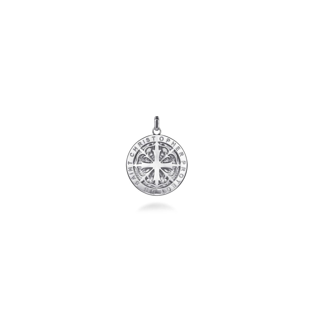Gabriel & Co Large Round Saint Christopher Pendant in Sterling Silver