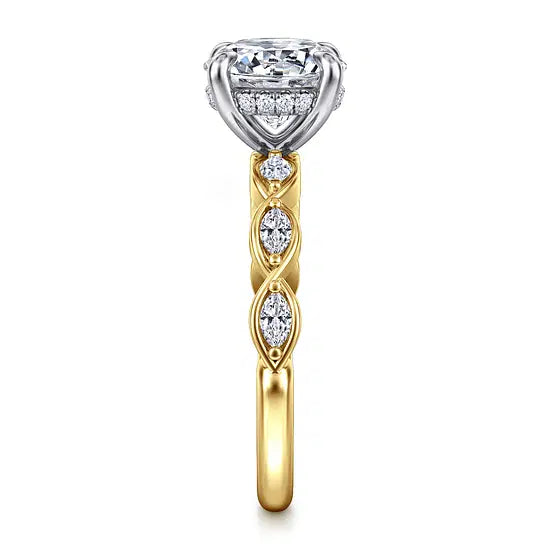 Gabriel & Co. Marquise Diamond Hidden Halo Semi-Mount Engagement Ring in 14K White and Yellow Gold (0.28ctw)