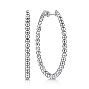 Gabriel & Co Oval Graduated Beaded Extra Large Hoop Earrings in Sterling Silver