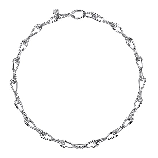 Gabriel & Co Oval Link Beaded Chain Necklace 16" in Sterling Silver