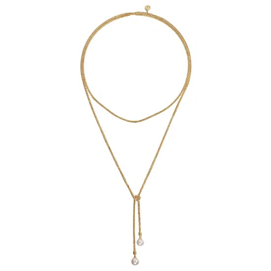 Gabriel & Co Pearl Wrap and Tie Necklace in 14K Yellow Gold (1.51ctw)