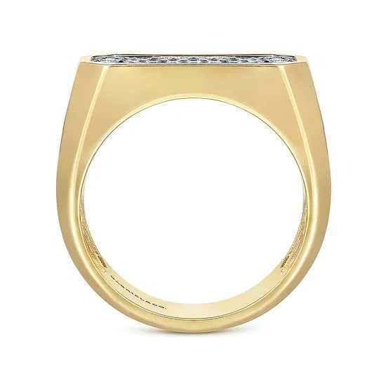Gabriel & Co Rectangular Pave Satin Men's Ring in 14K Yellow Gold (0.82ctw)