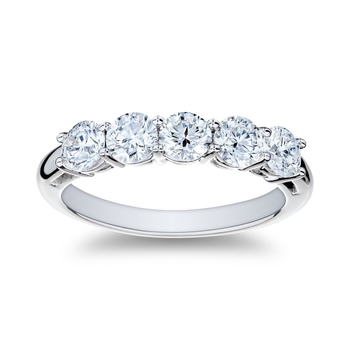 Gabriel & Co Round 5 Stone Anniversary Band Ring in 14K White Gold (1.3ctw)