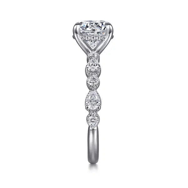 Gabriel & Co. Round and Pear Diamond Half Band with Beaded Halo Semi-Mount Engagement Ring in 14K White Gold (.54ctw)