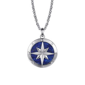 Gabriel & Co Round Diamond and Lapis Face Compass Pendant Necklace in Sterling Silver (6.14ctw)