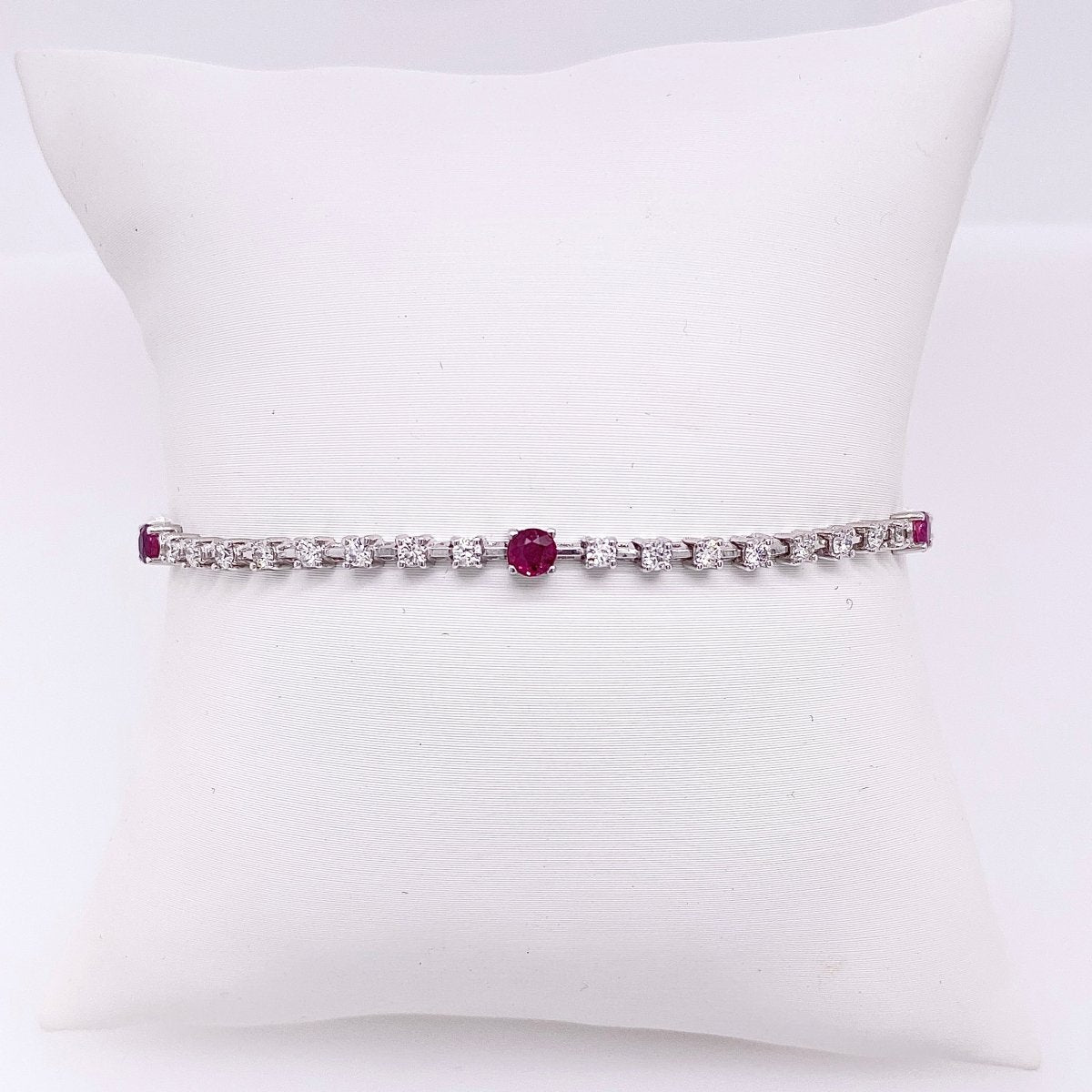 Gabriel & Co Round Diamond and Ruby Bangle Bracelet in 14K White Gold (2.45tcw)