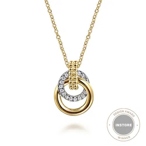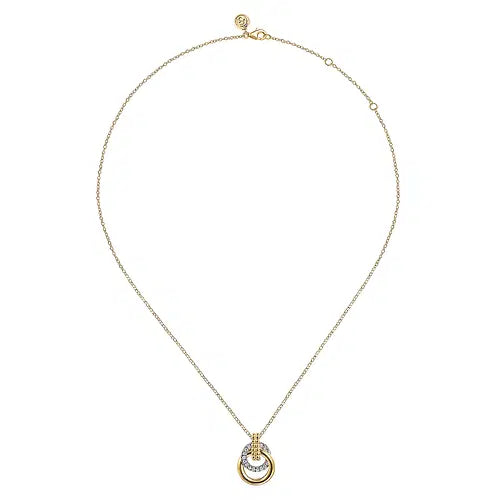 Gabriel & Co Round Diamond Entwined Double Circle Pendant Necklace in 14K Yellow and White Gold (0.24ct)
