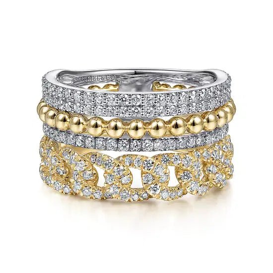 Gabriel & Co Round Diamond Layered Stack Fashion Ring in 14K Yellow and White Gold (1.06ctw)