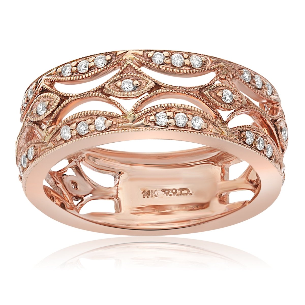 Gabriel & Co Round Diamond Three Row Band in 14K Rose Gold (0.27ctw)