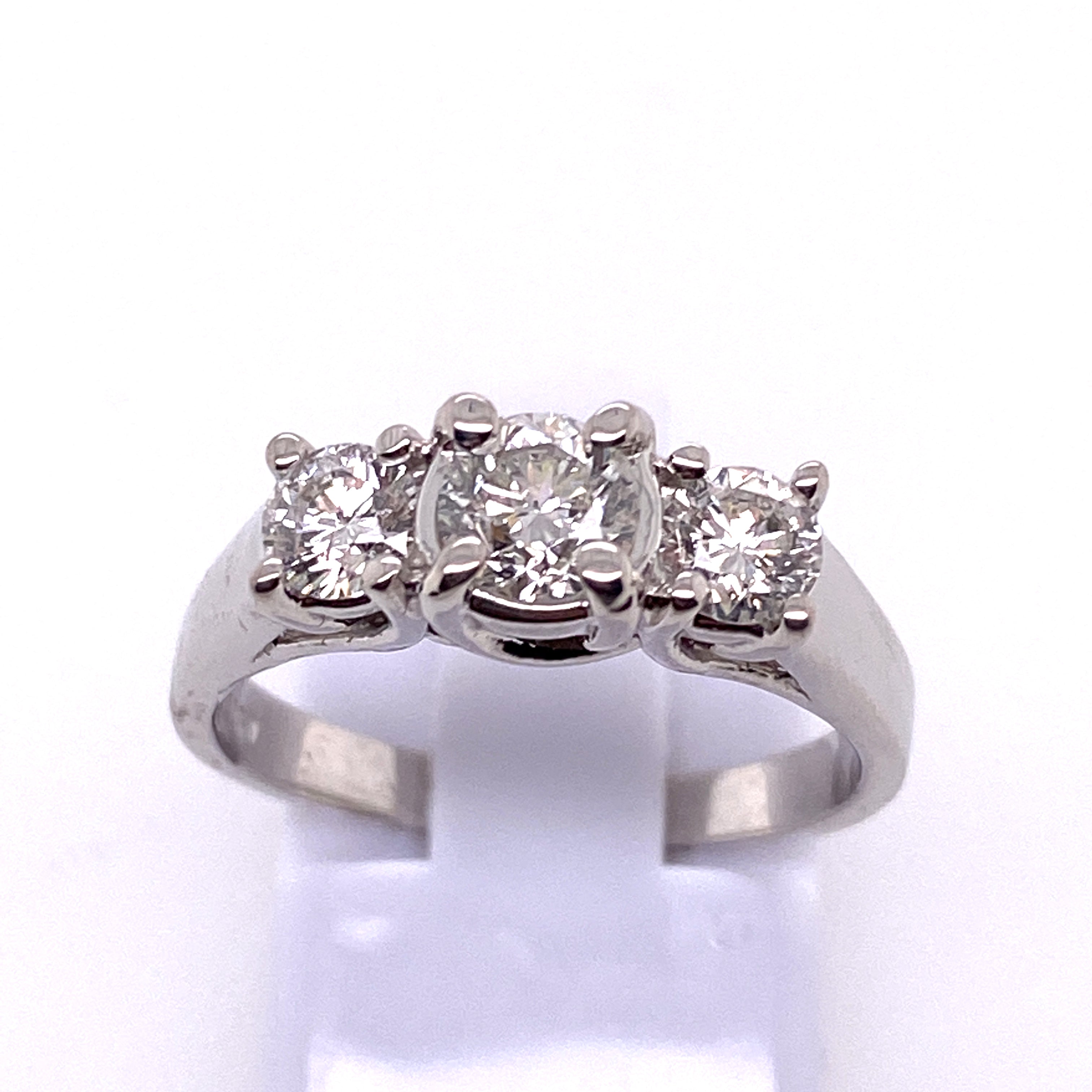 Gabriel & Co Round Diamond Three Stone Engagement Ring in 14K White Gold (1ct)