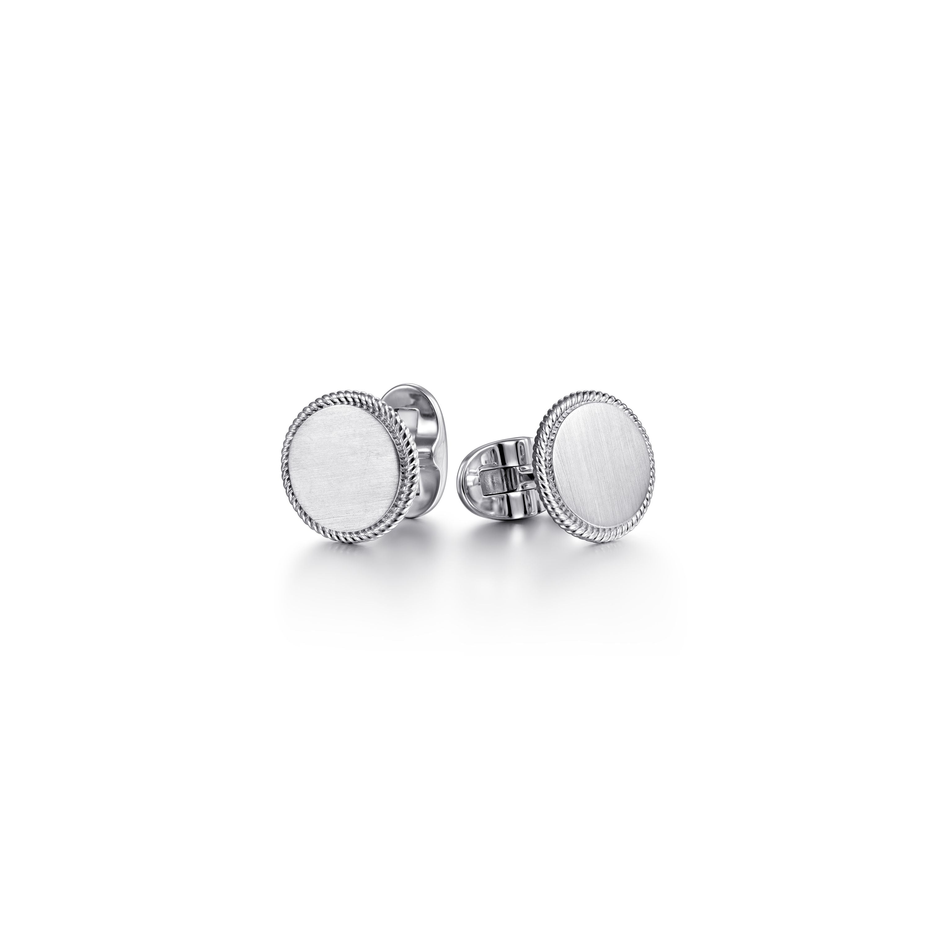 Gabriel & Co Round Raised Brush Top Twist Trim Cuff Links in Sterling Silver