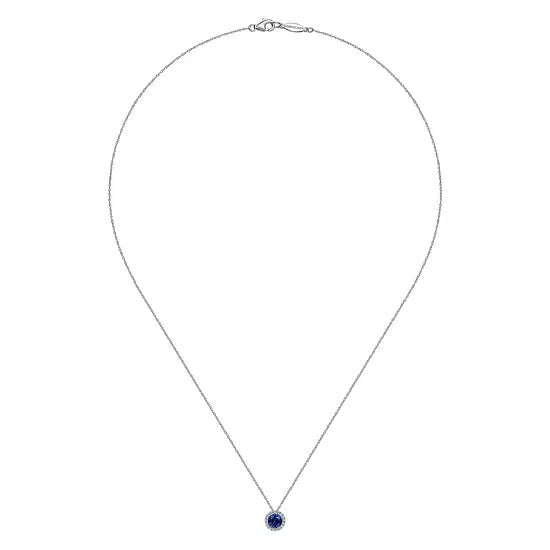 Gabriel & Co Round Sapphire and Diamond Halo Pendant in 14K White Gold (0.5ct)