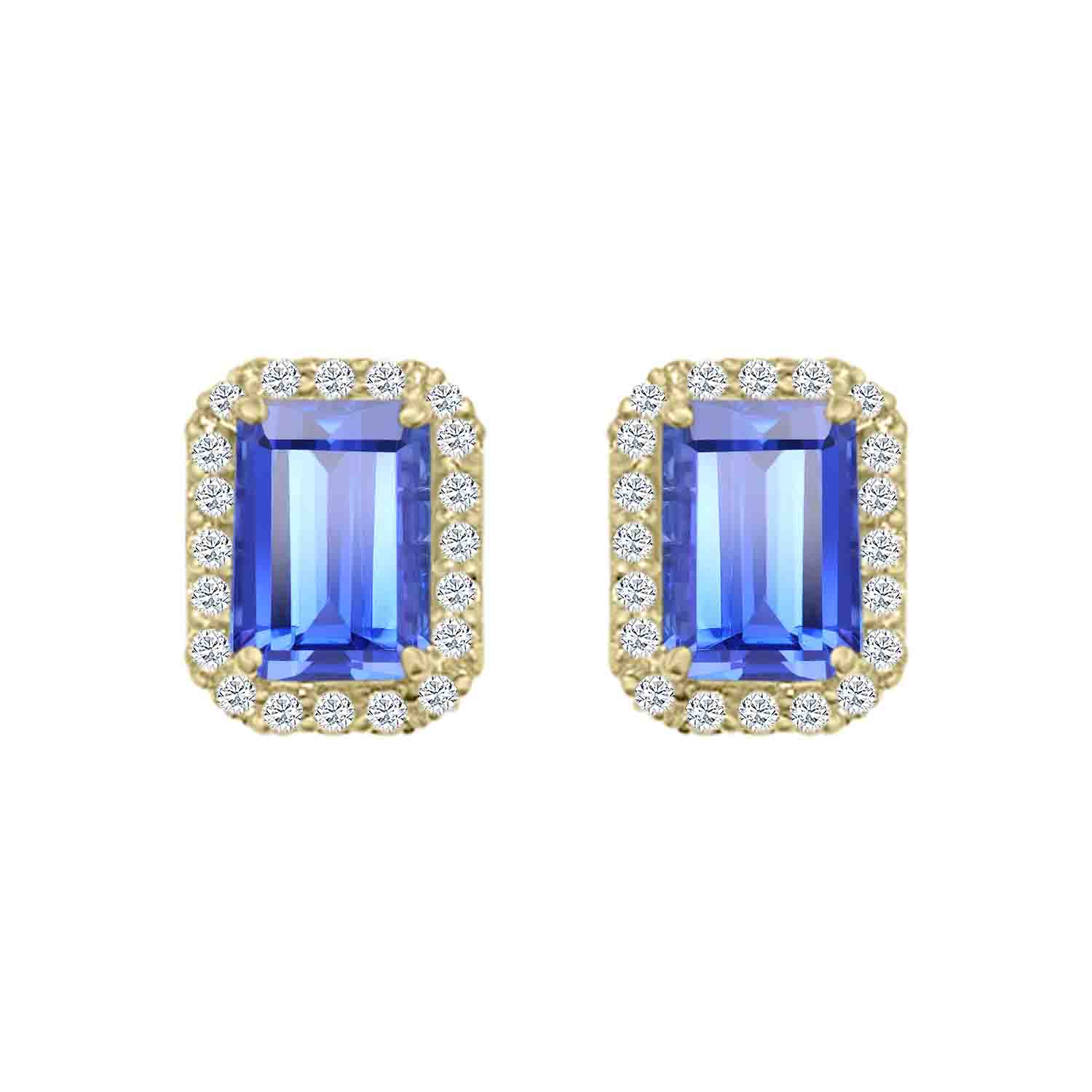 Gabriel & Co Tanzanite and Diamond Halo Stud Earrings in 14K Yellow Gold (2.15ctw)