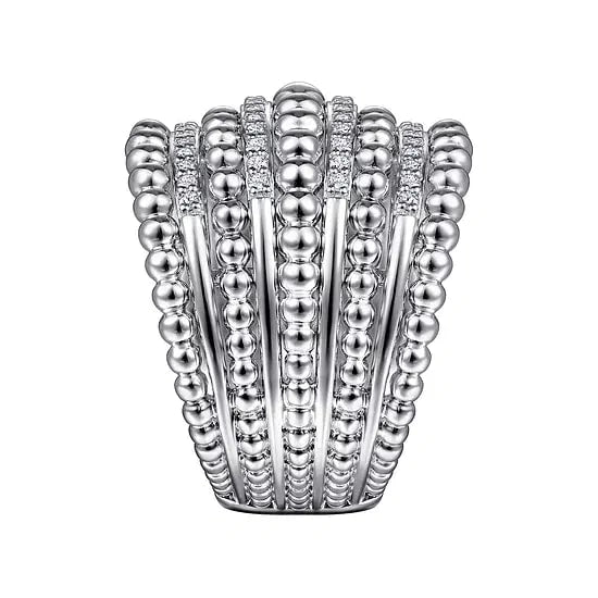 Gabriel & Co White Sapphire 8 Row Graduated Bead Ring in Sterling Silver (0.4ctw)