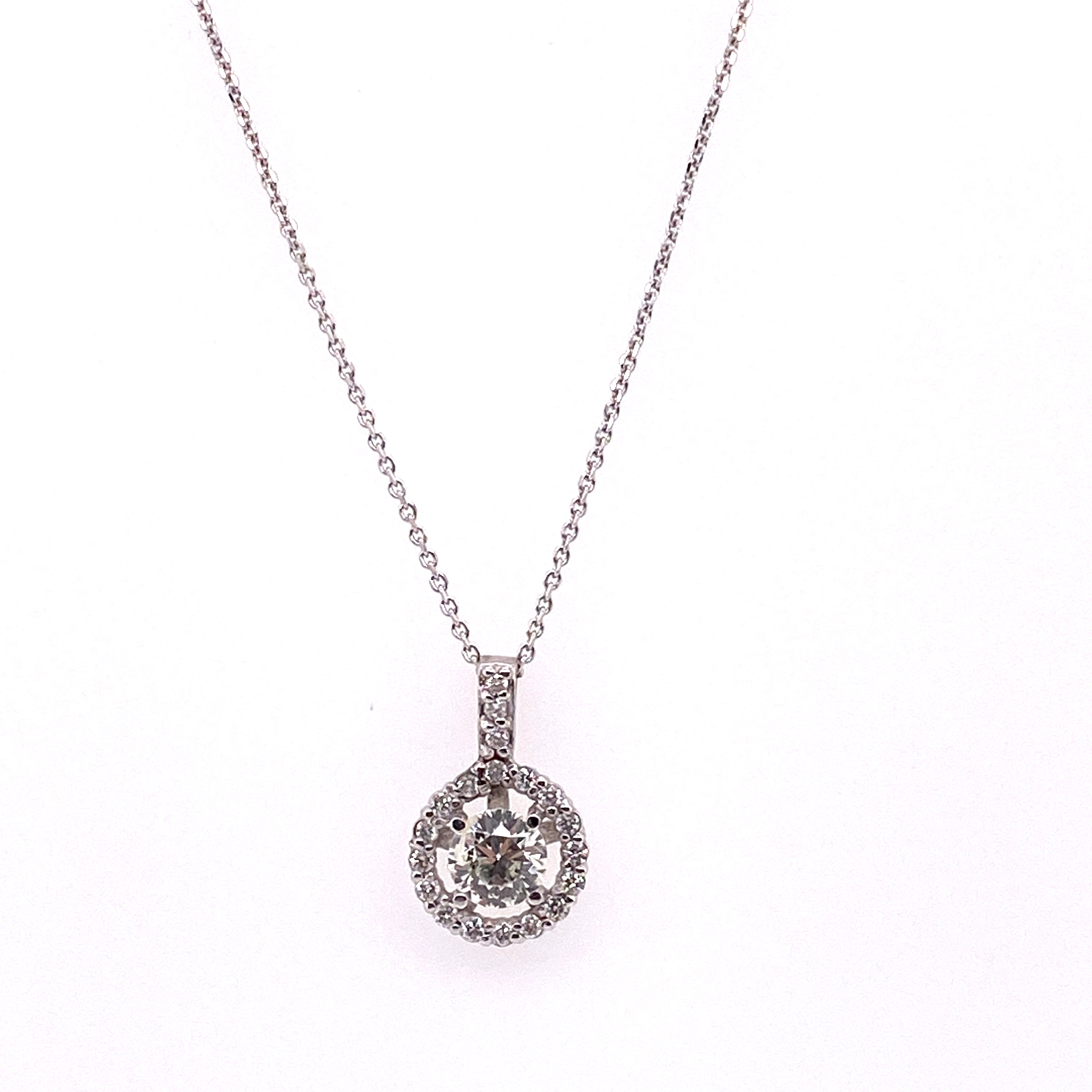Halvor Round Diamond Center Diamond Halo Pendant in 14K White Gold (.60ctw)