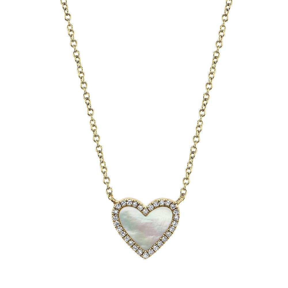 Heart Shaped Mother of Pearl and Diamond Pendant in 14K Yellow Gold (0.65ctw)