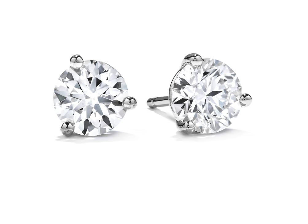 Hearts on Fire Round Diamond 3 Prong Martini Stud Earrings in 18K White Gold (0.72ctw)