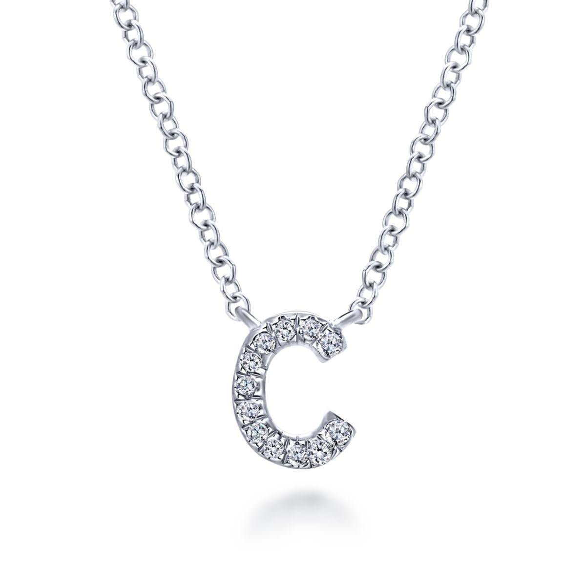 Initial Pendant Necklace with 0.06ctw Diamond in 14K White Gold (0.06ctw)