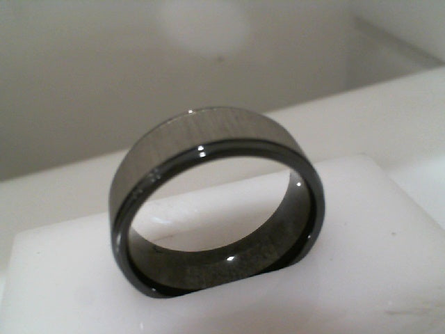Men's Band Sterling Silver Satin Cross/Black Polish Ring in Sterling Silver