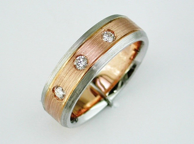 Men's Band with Round Diamond Flush 3 Stone in 18K White Gold (0.26ctw)