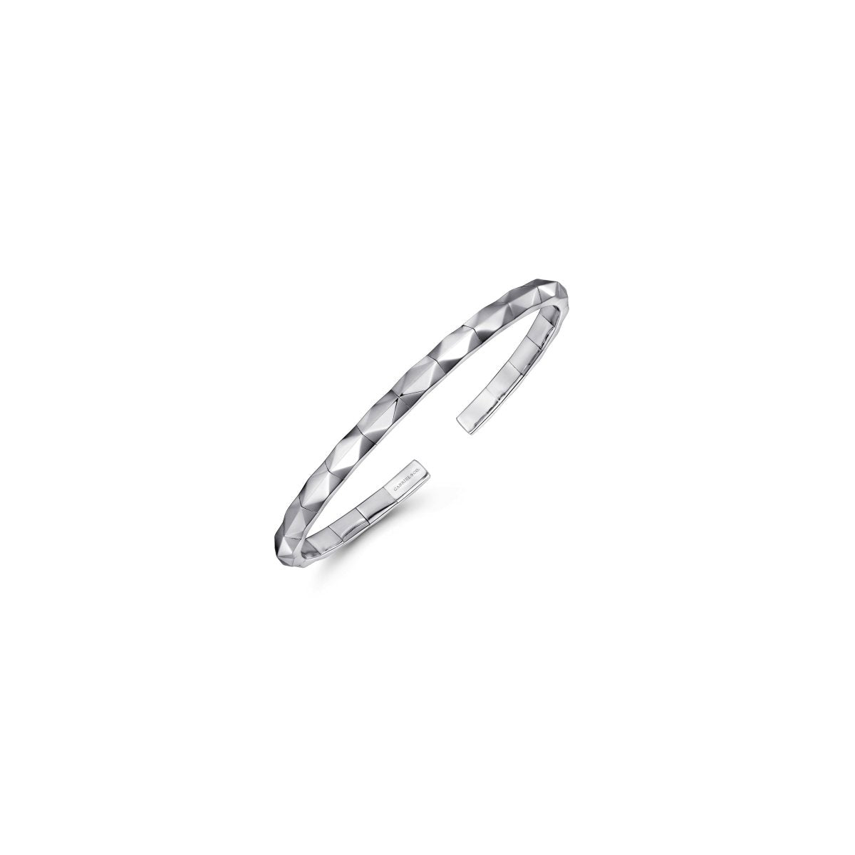 Men's Faceted Thin Flex Cuff Bangle Bracelet in Sterling Silver